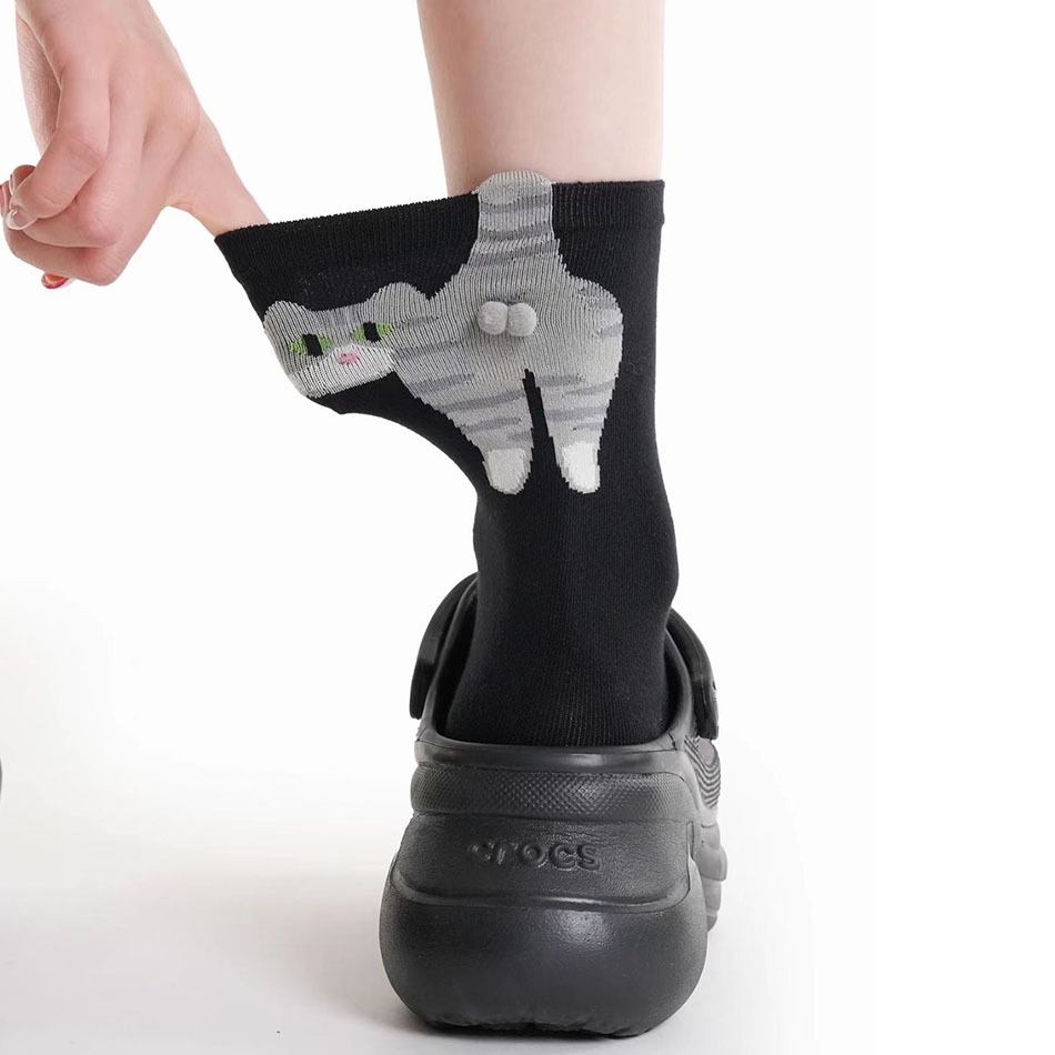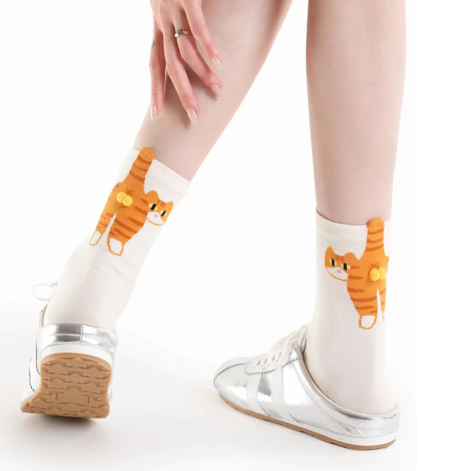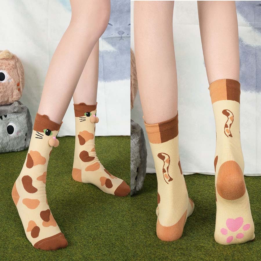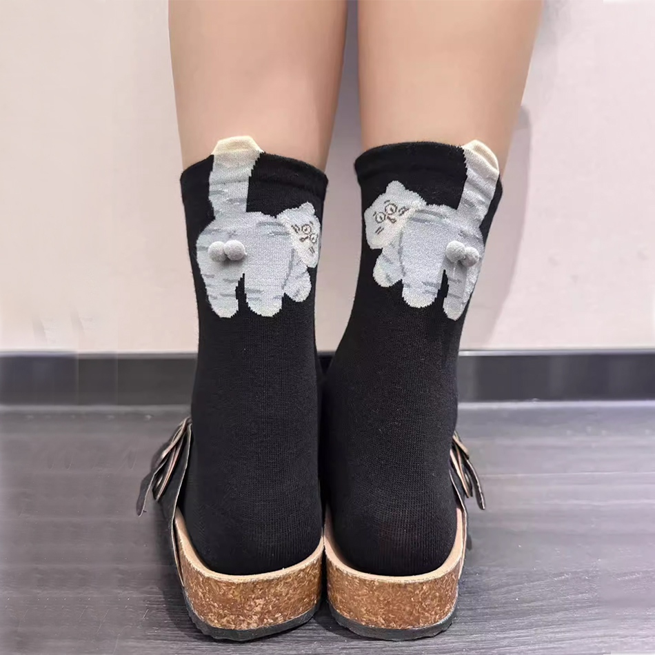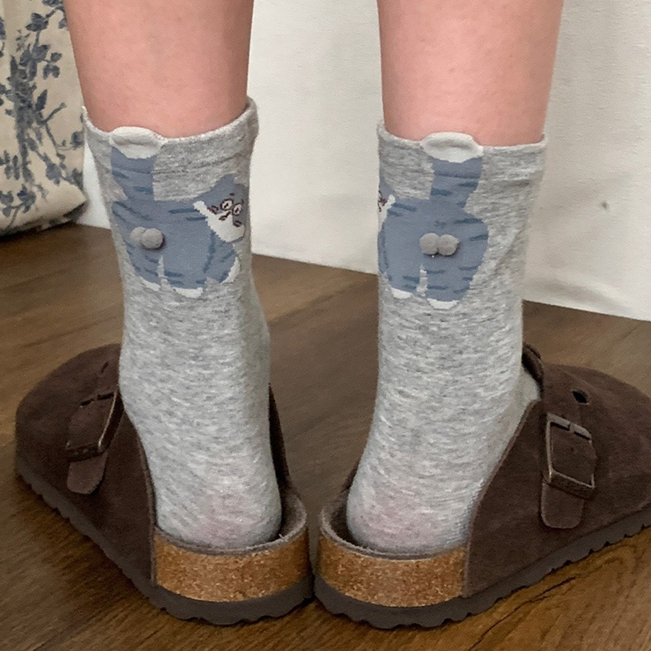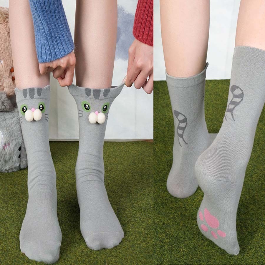 Engraçado cartoon gato meias engrossado senhoras respirável meias de algodão presente para os amantes do gato
