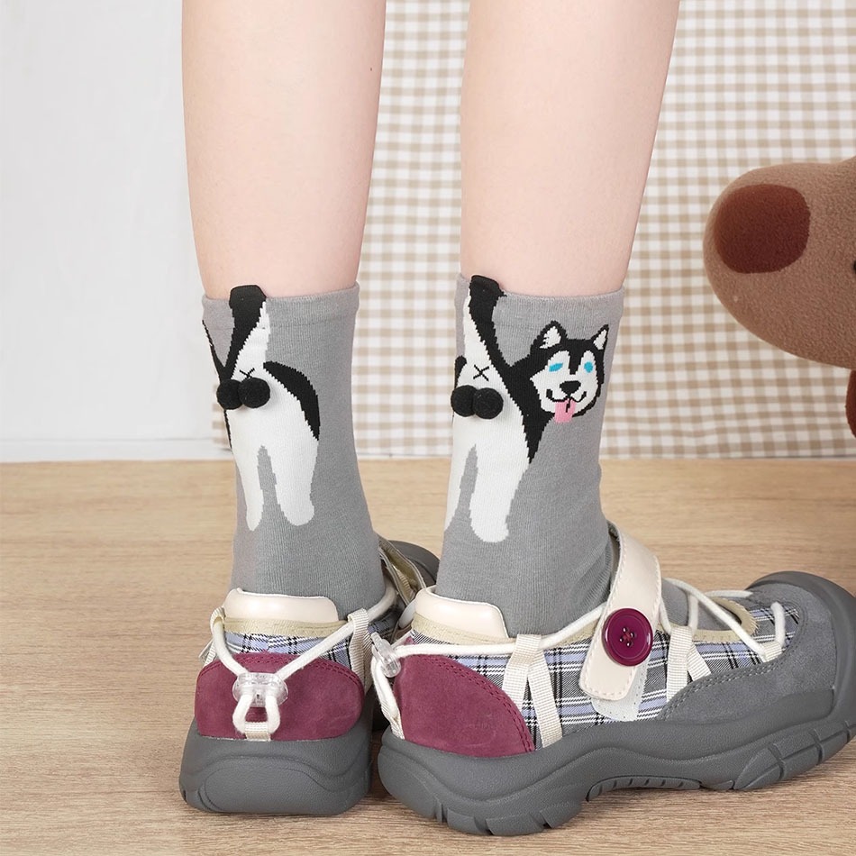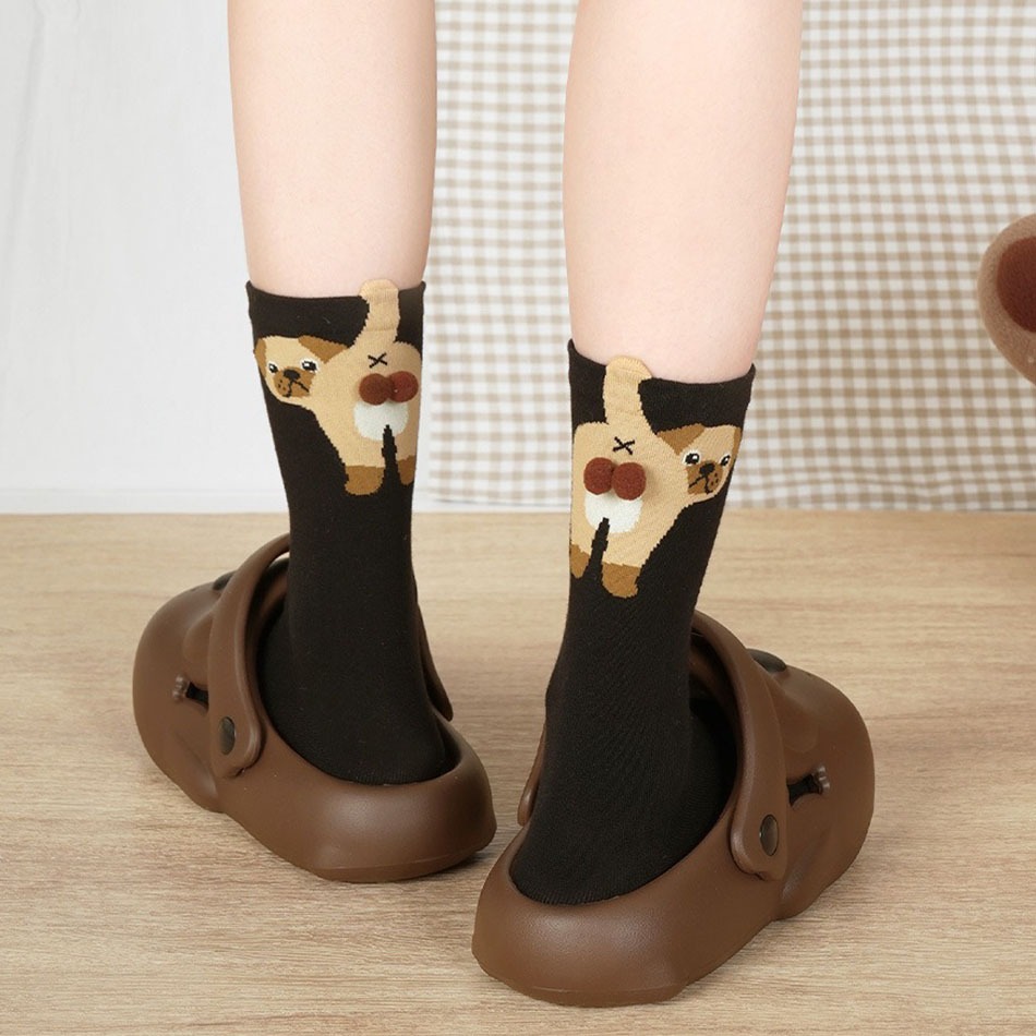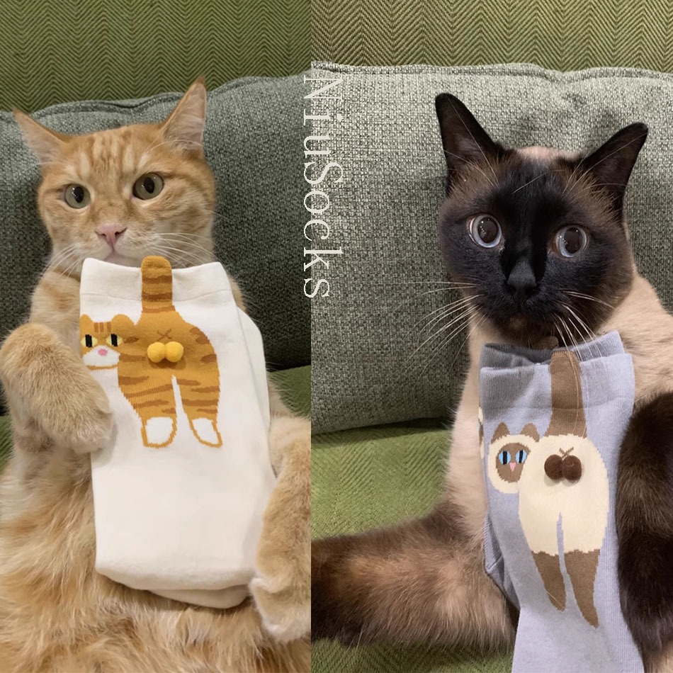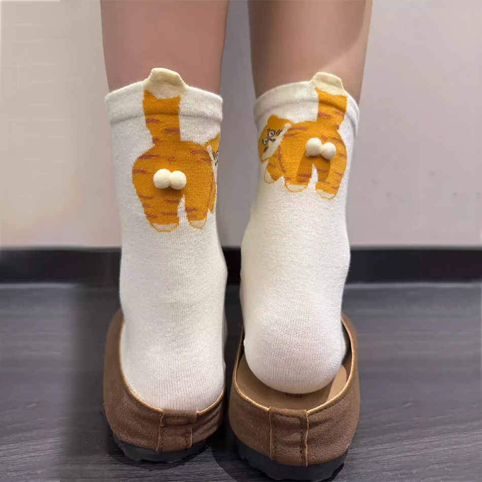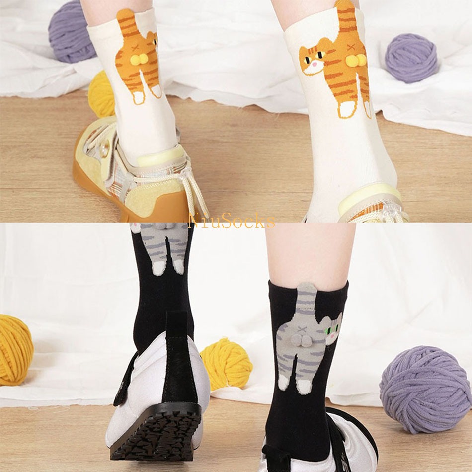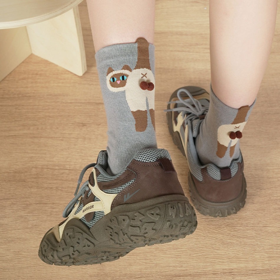 Engraçado cartoon gato meias engrossado senhoras respirável meias de algodão presente para os amantes do gato