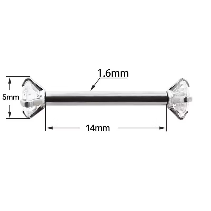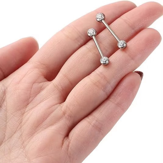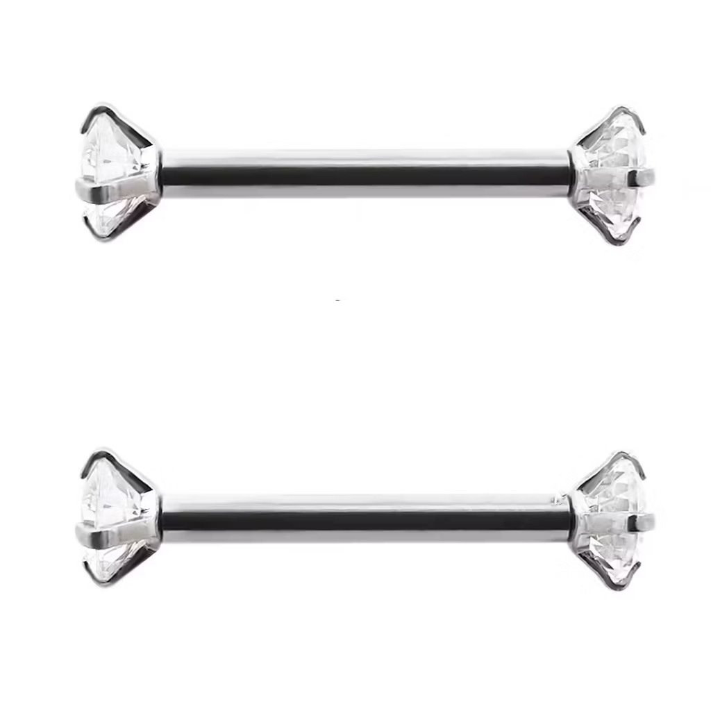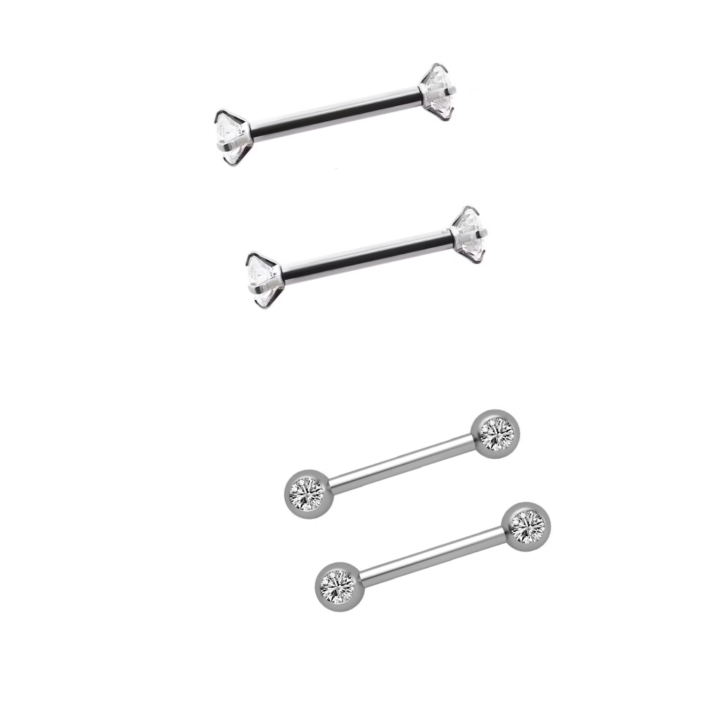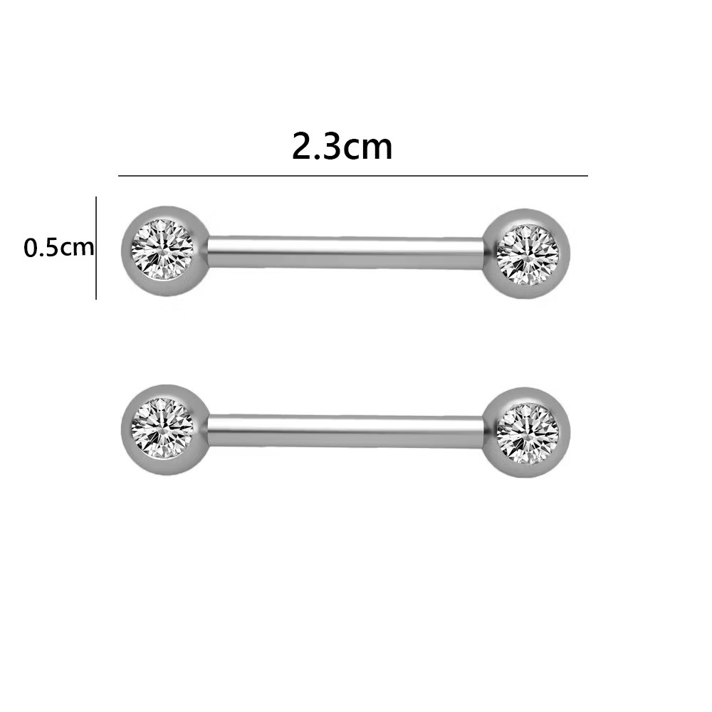 Kit2 Piercing Barra Aço Para Mamilo Formato Redonto Cristal (Rosca interna)