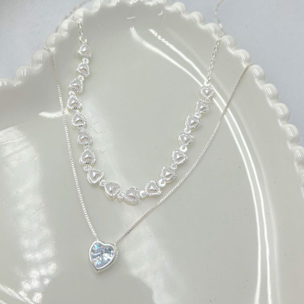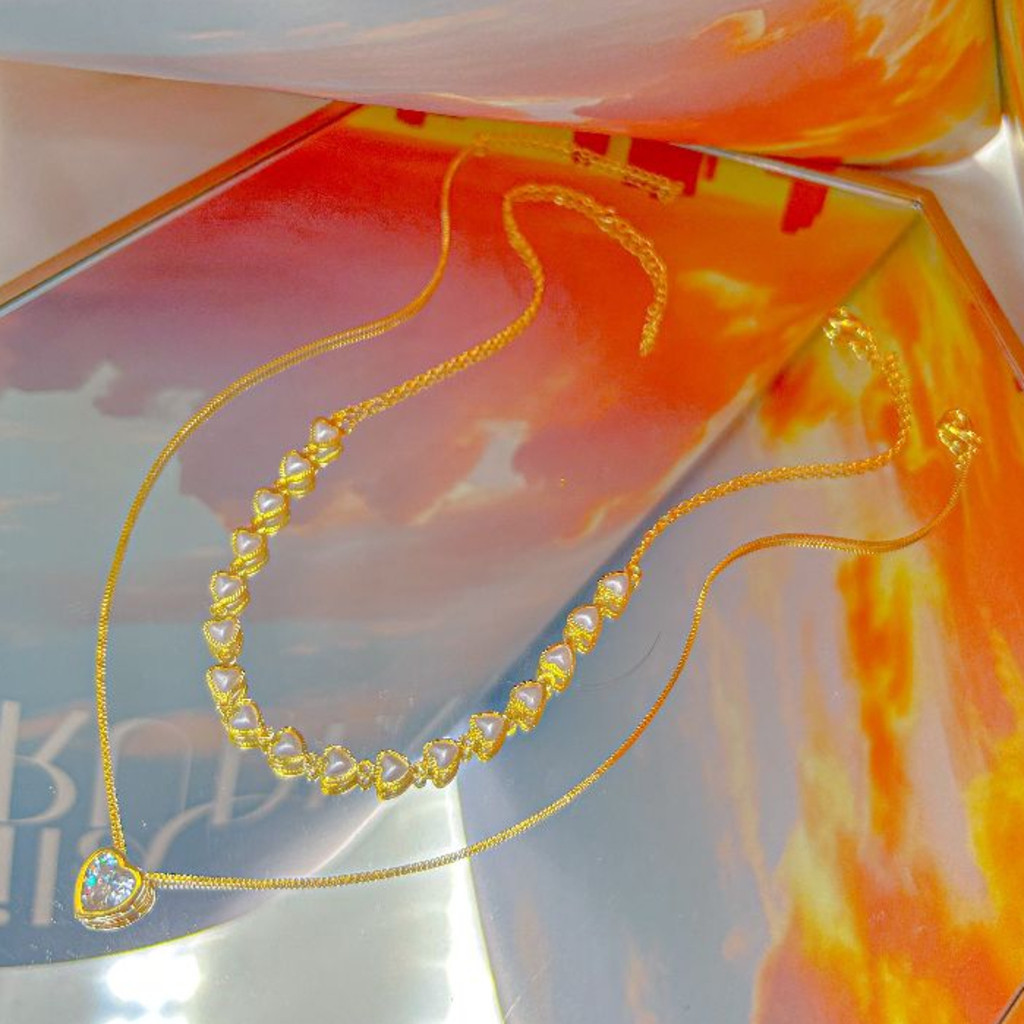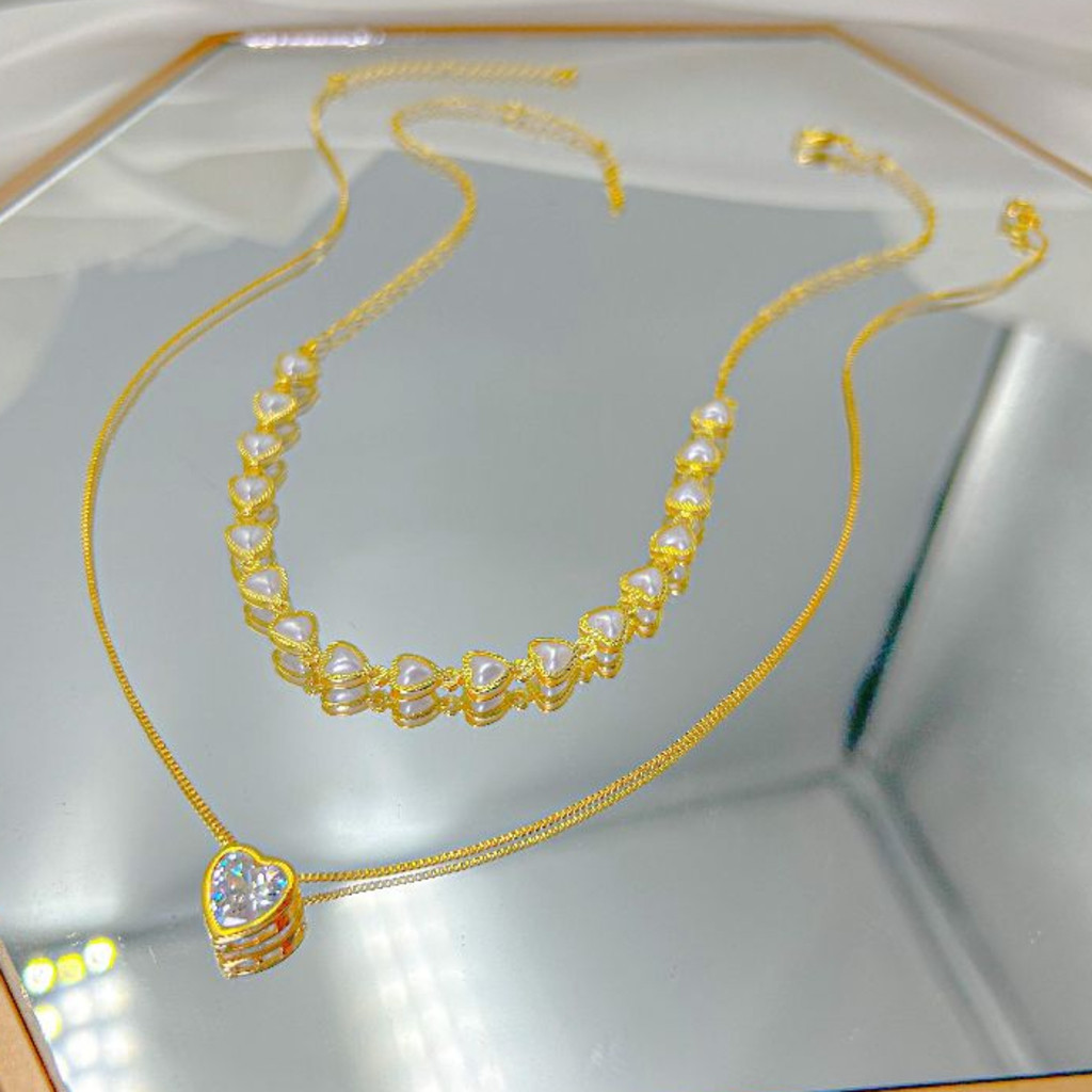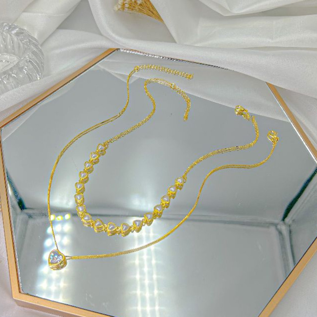 KIT 2 Choker Colar de pérolas de coração + Colar Com coração Ponto De Luz banhado a prata a ouro 18K