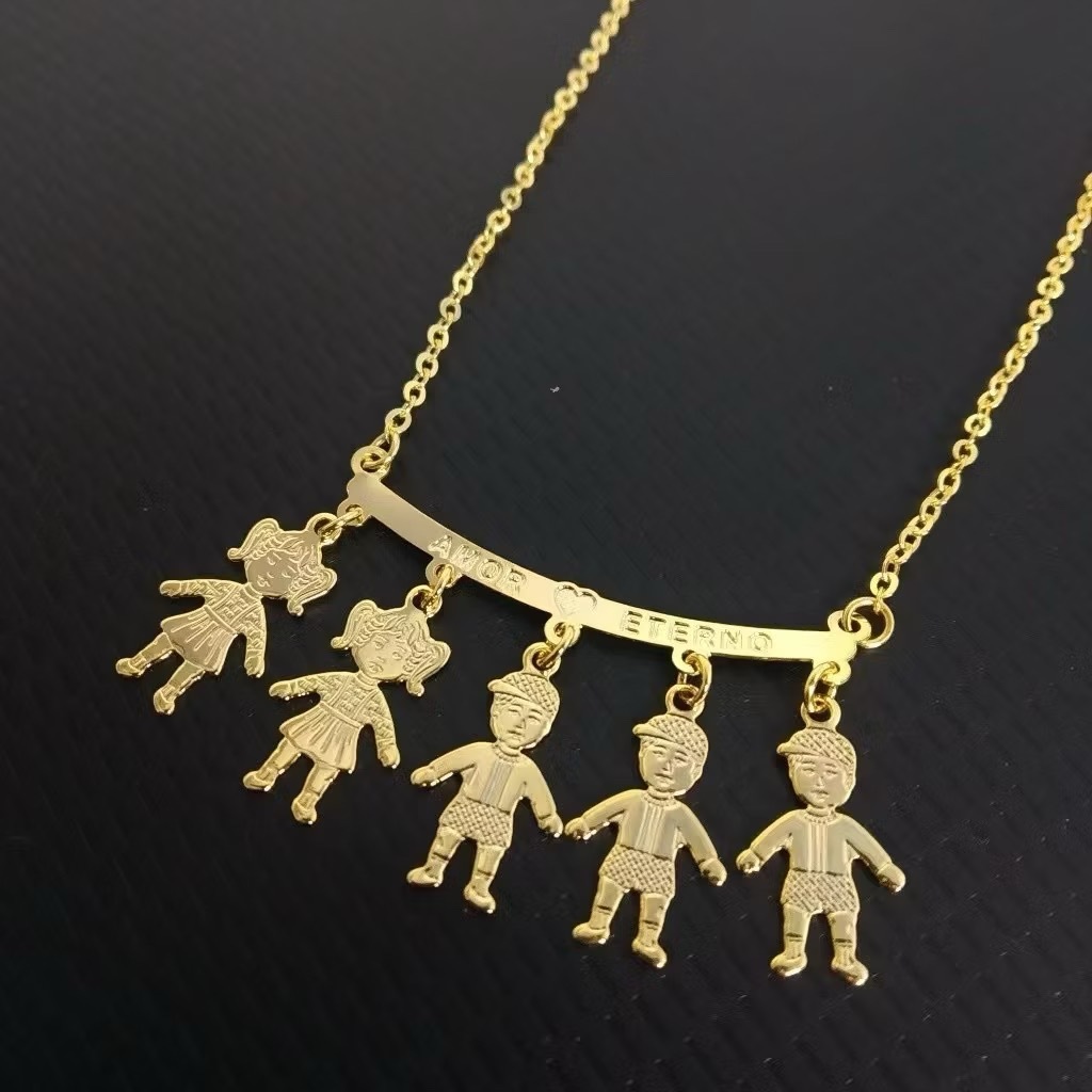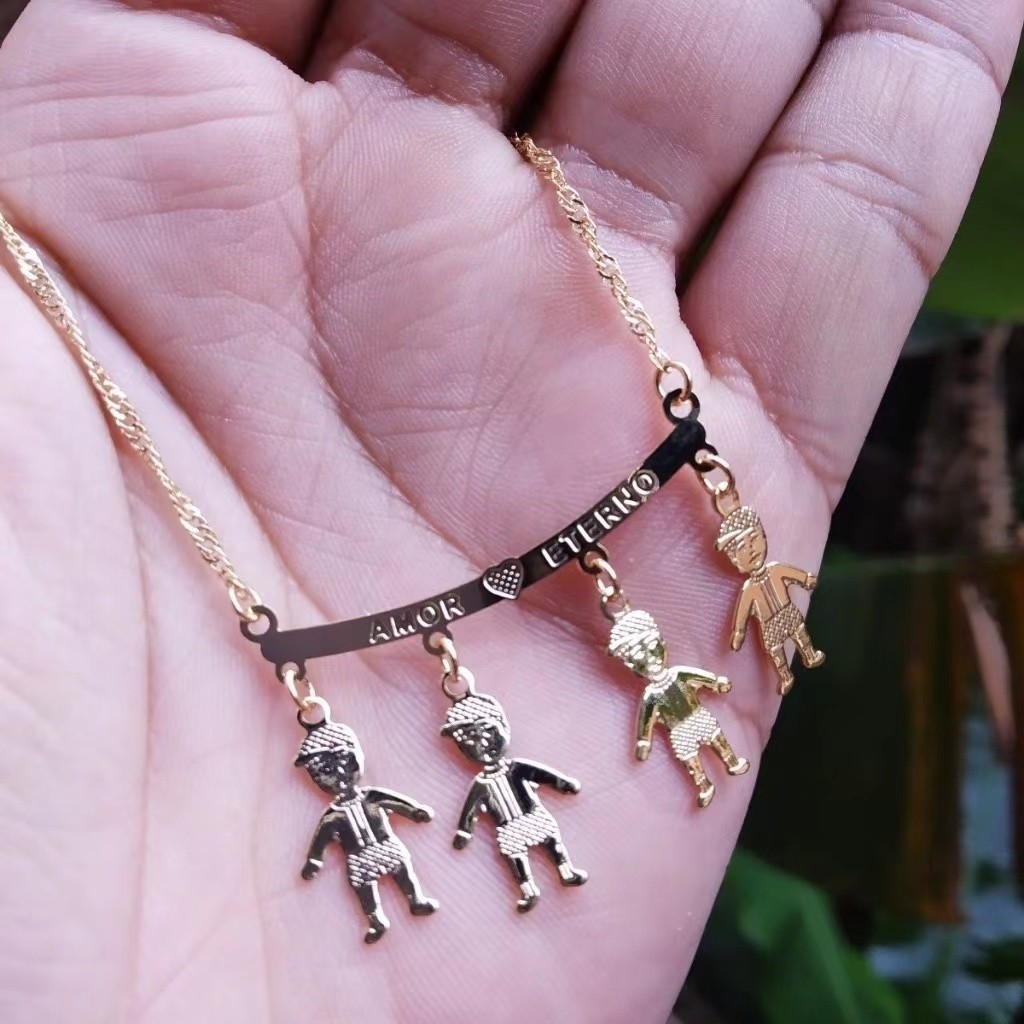 Colar Filhos Casal Menino Menina Três Quatro Filhos Filhas Meninos Meninas Folheado