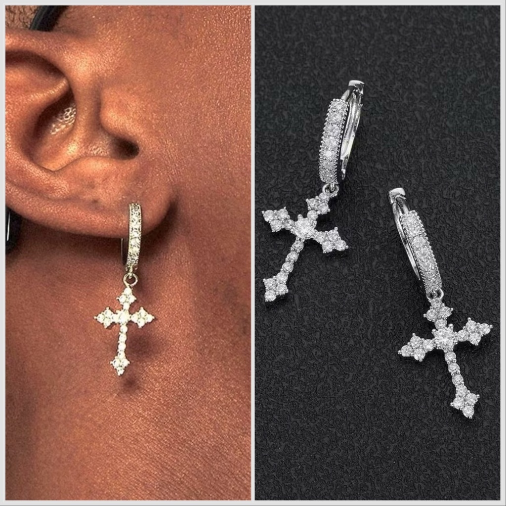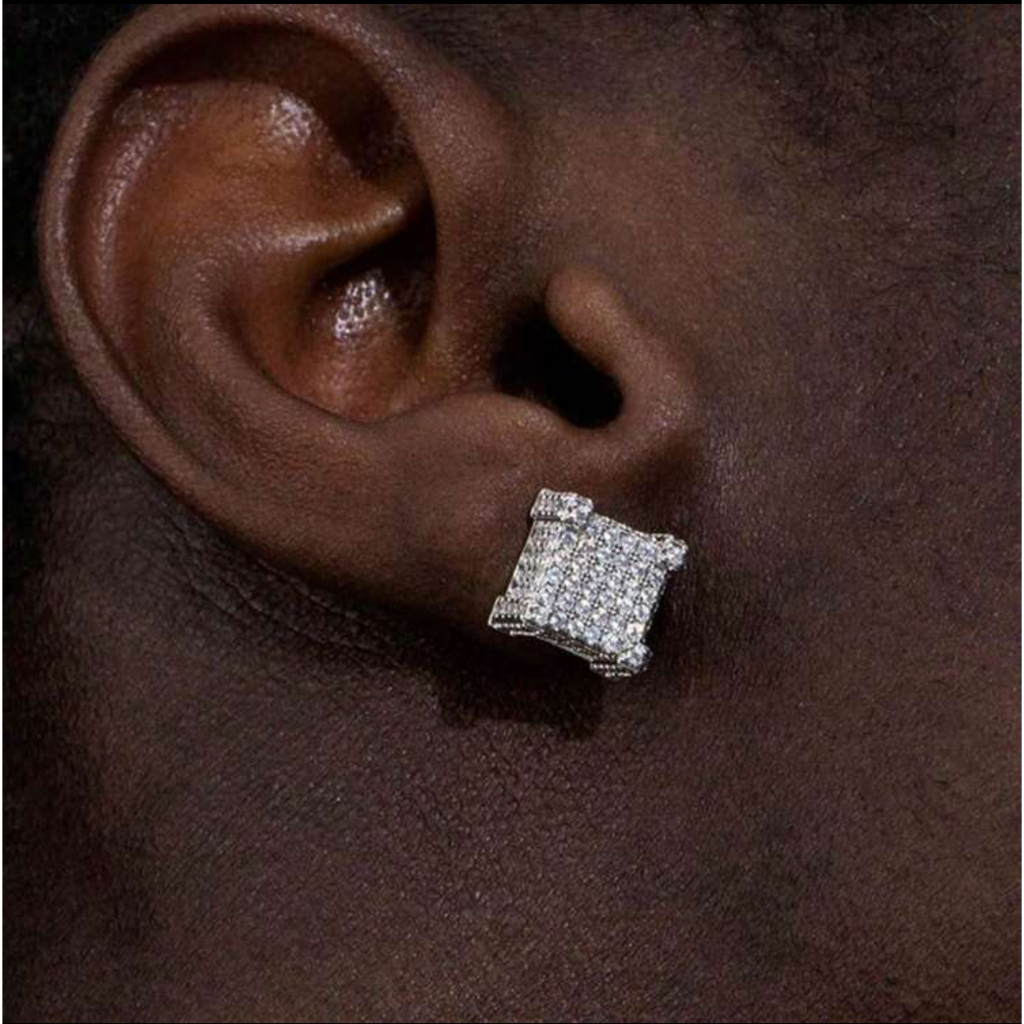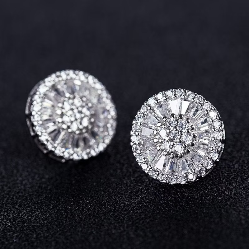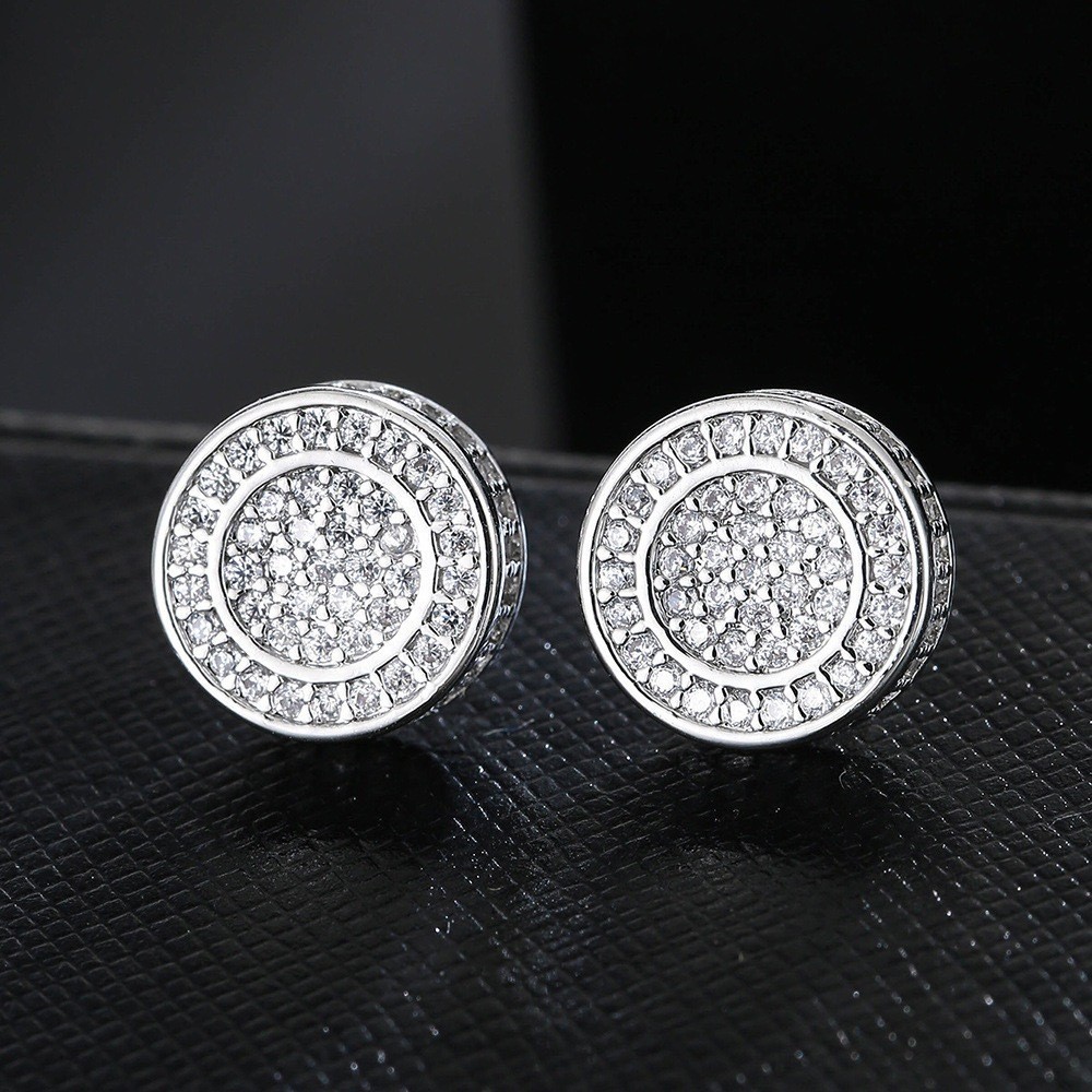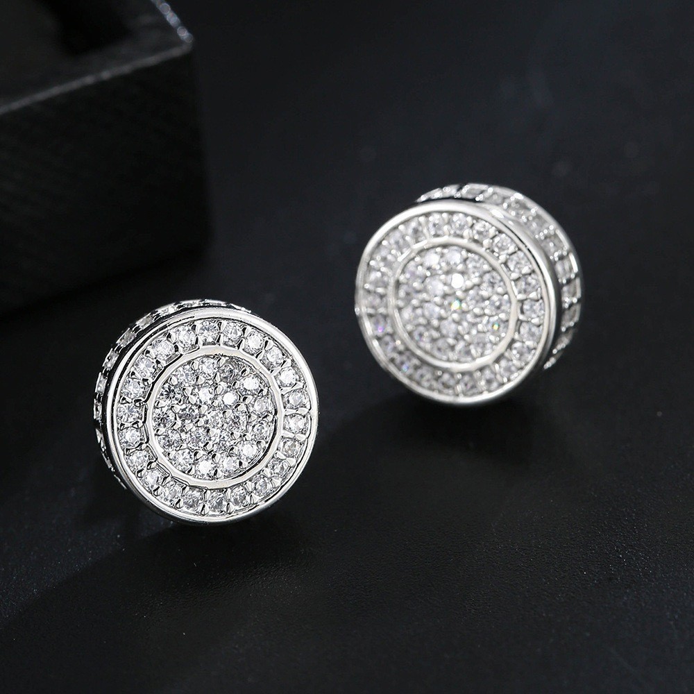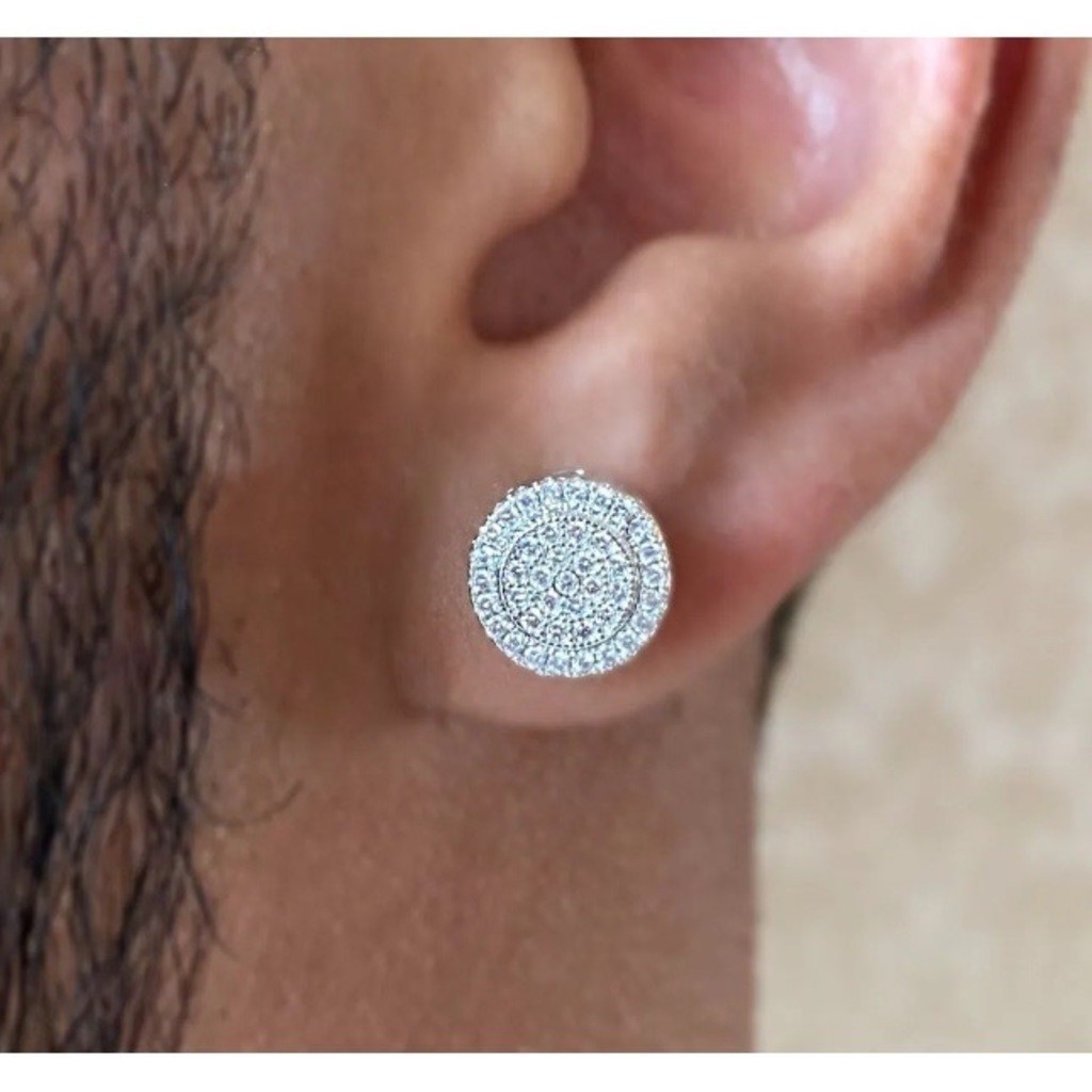 Brinco Masculino Redondo Todo Cravejado Prateado