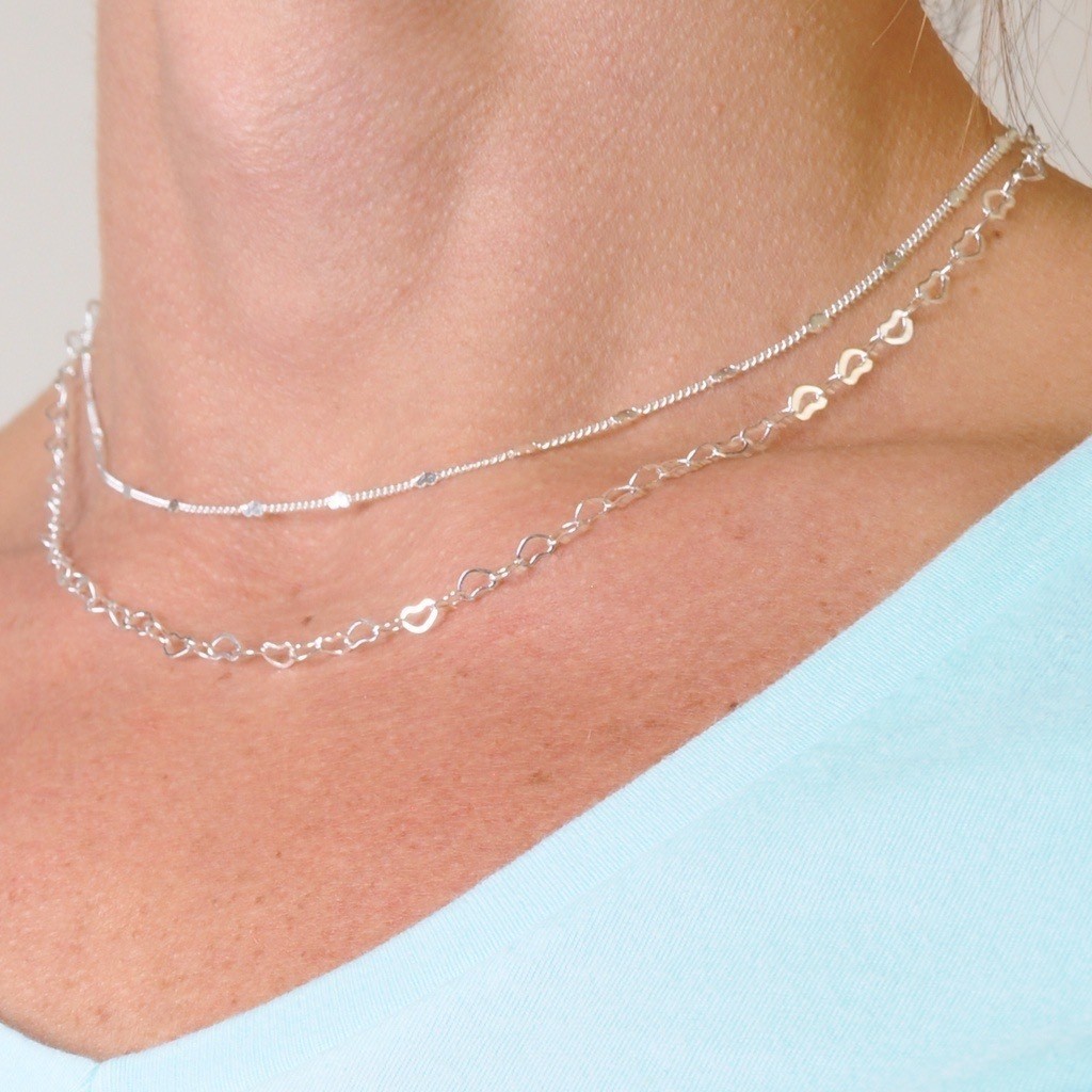 Colar Coração + Corrente Detalhe Coração Banhado Prata 925