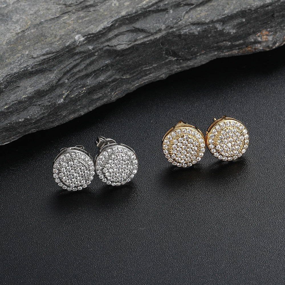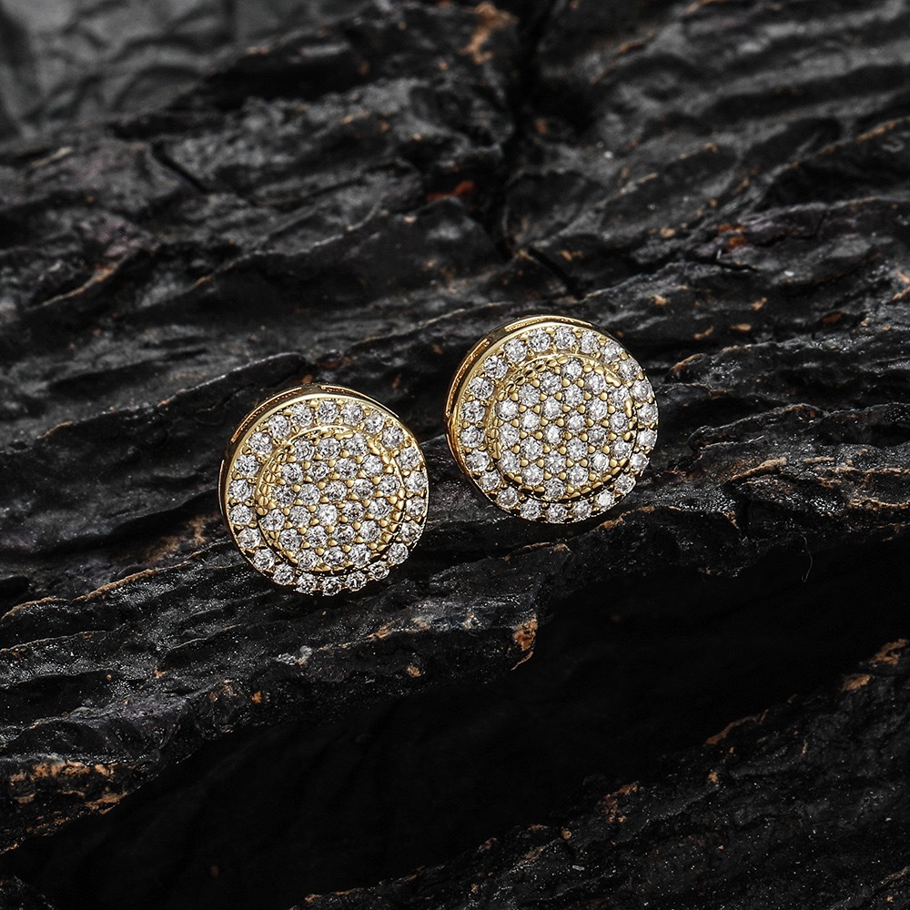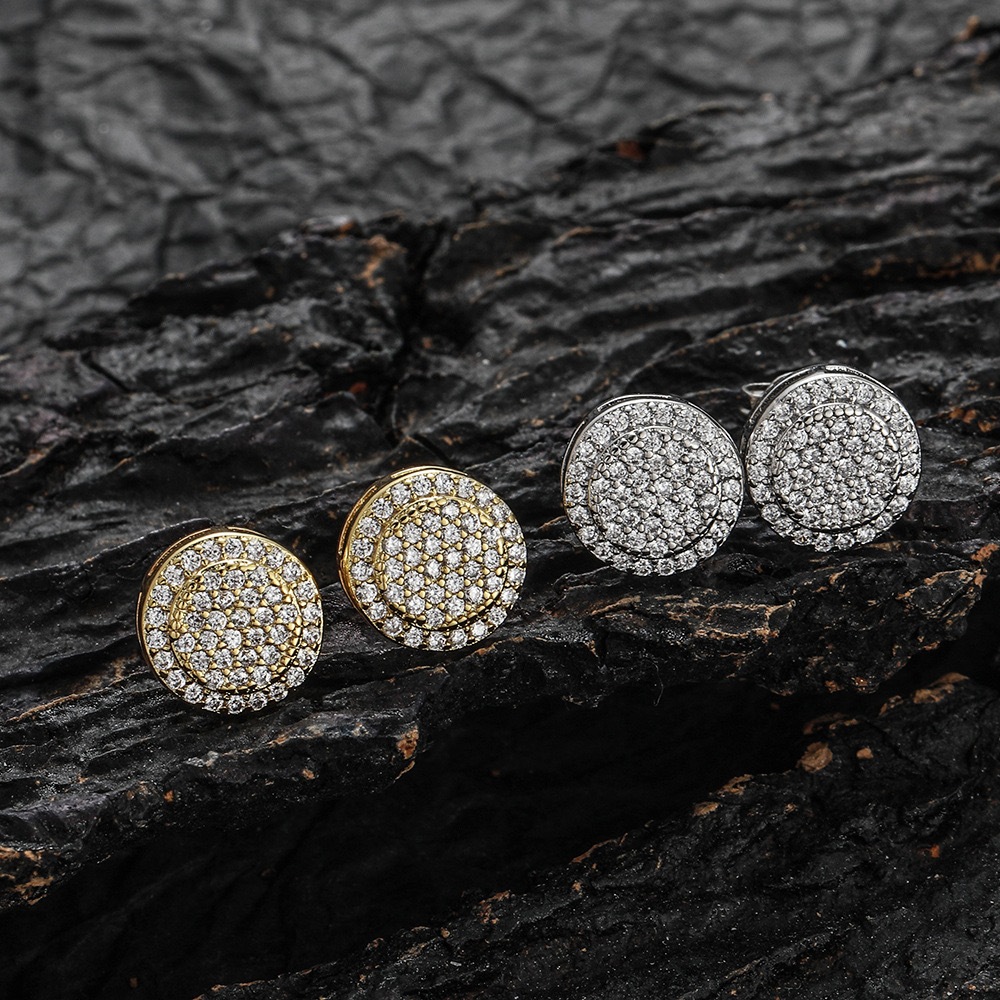 Brinco Masculino Redondo Cravejado banhado a prata 925 a ouro 18k