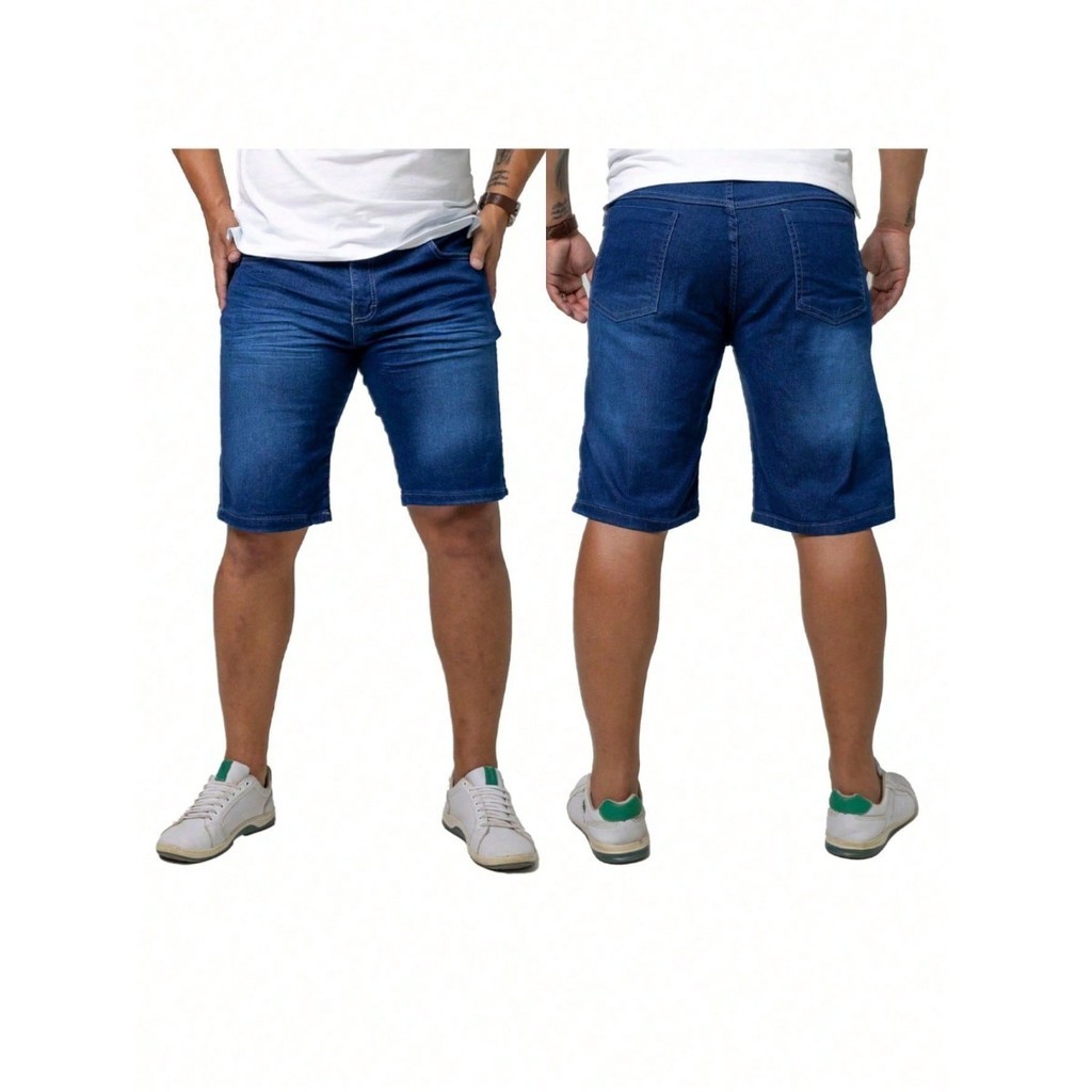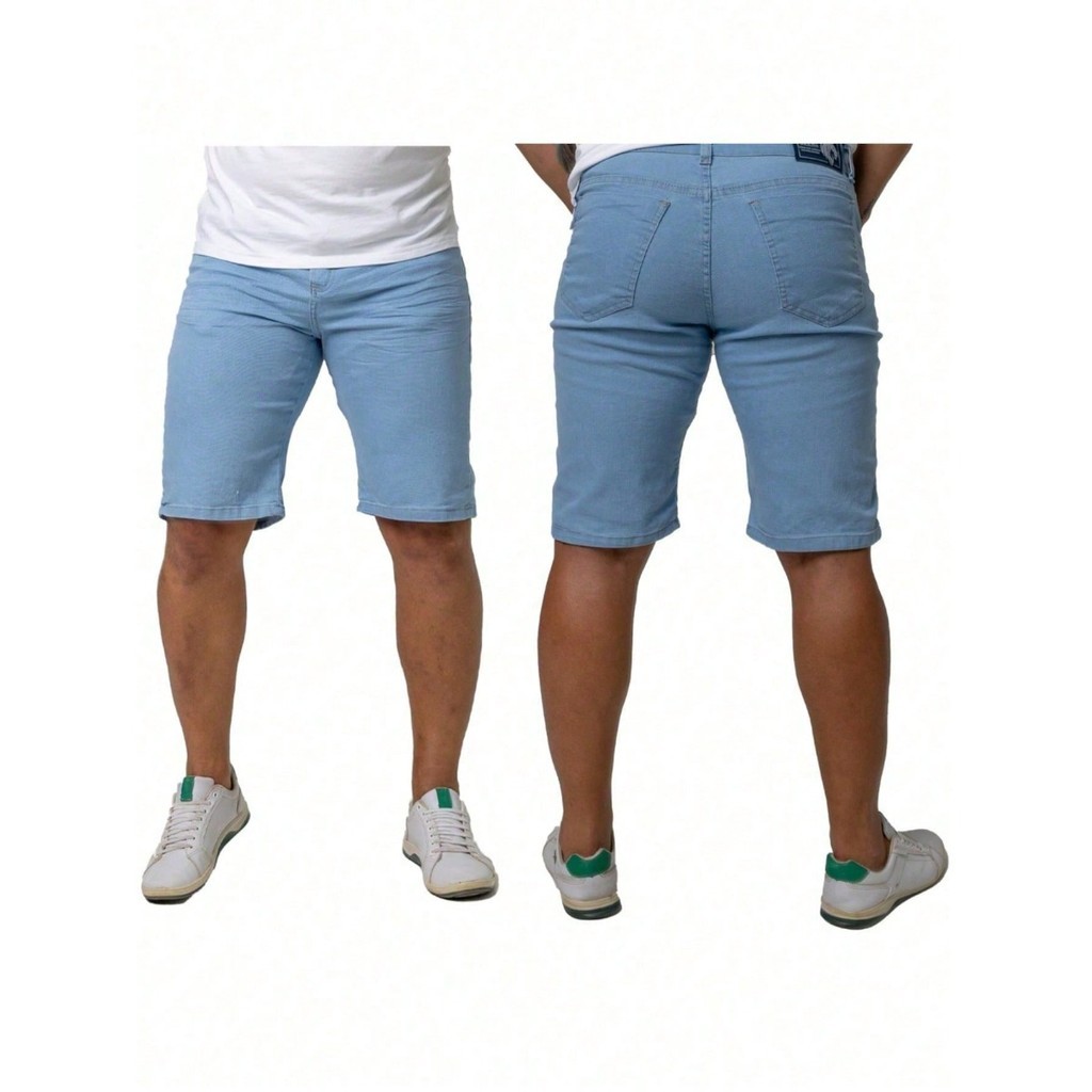 Kit 3 Bermuda Masculina Jeans Elastano Premium 1 Azul Clara + 1 Azul Bigode + 1 Azul USED | Jeans Dias dos Pais