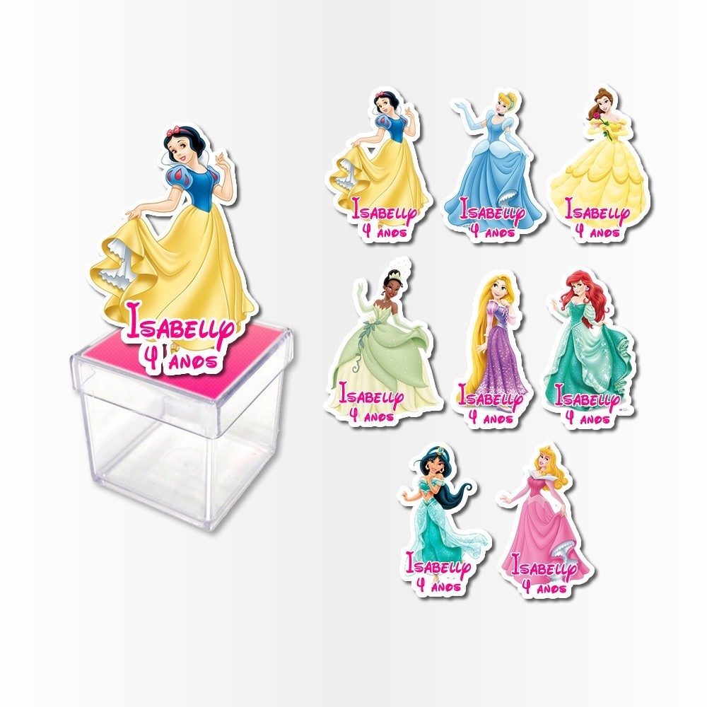 12 Apliques 3d para Caixa Acrilica 5cm Aplique Kit Festa Infantil 3d Tubete Princesas