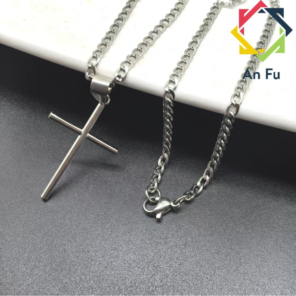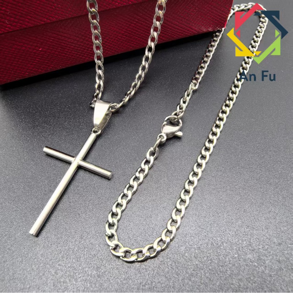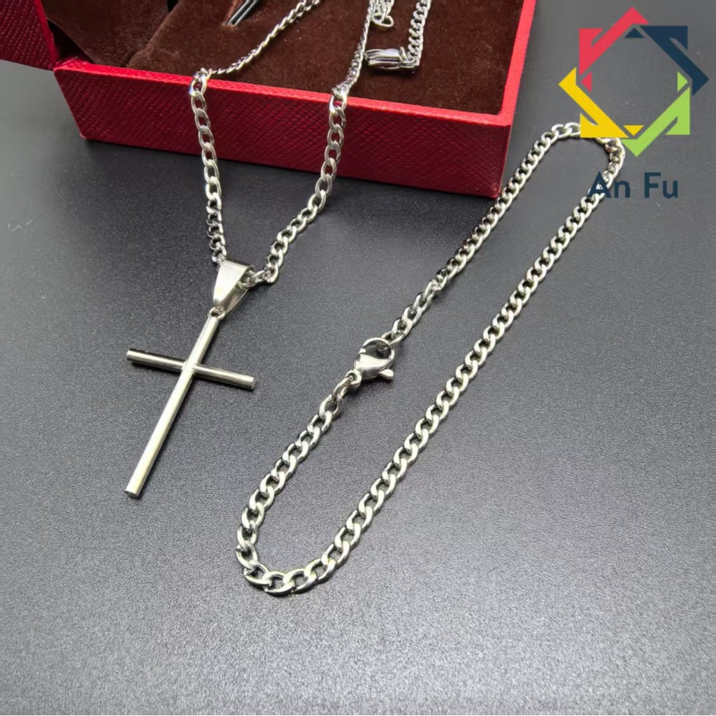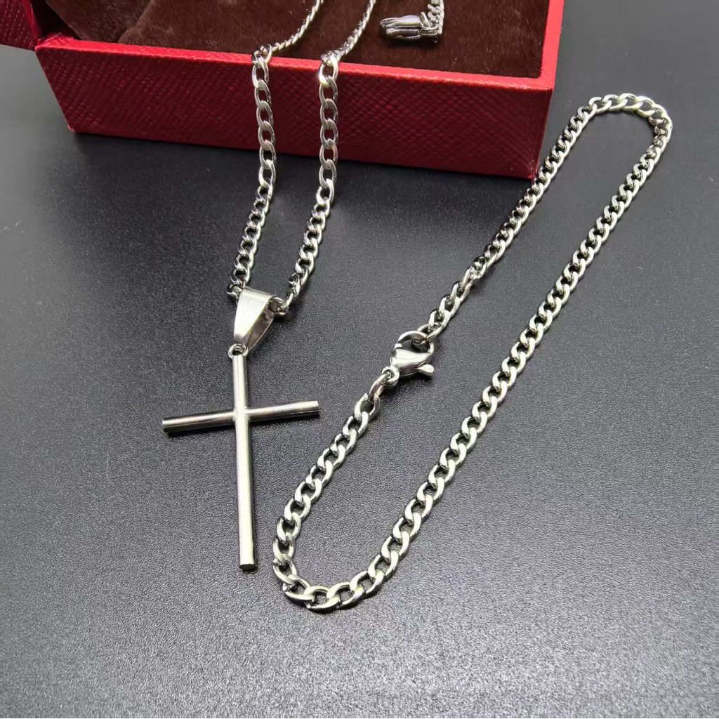 Conjunto Unissex de Aço Inox 316L - Corrente Prateada com Cruz Dourada, Estilo e Durabilidade