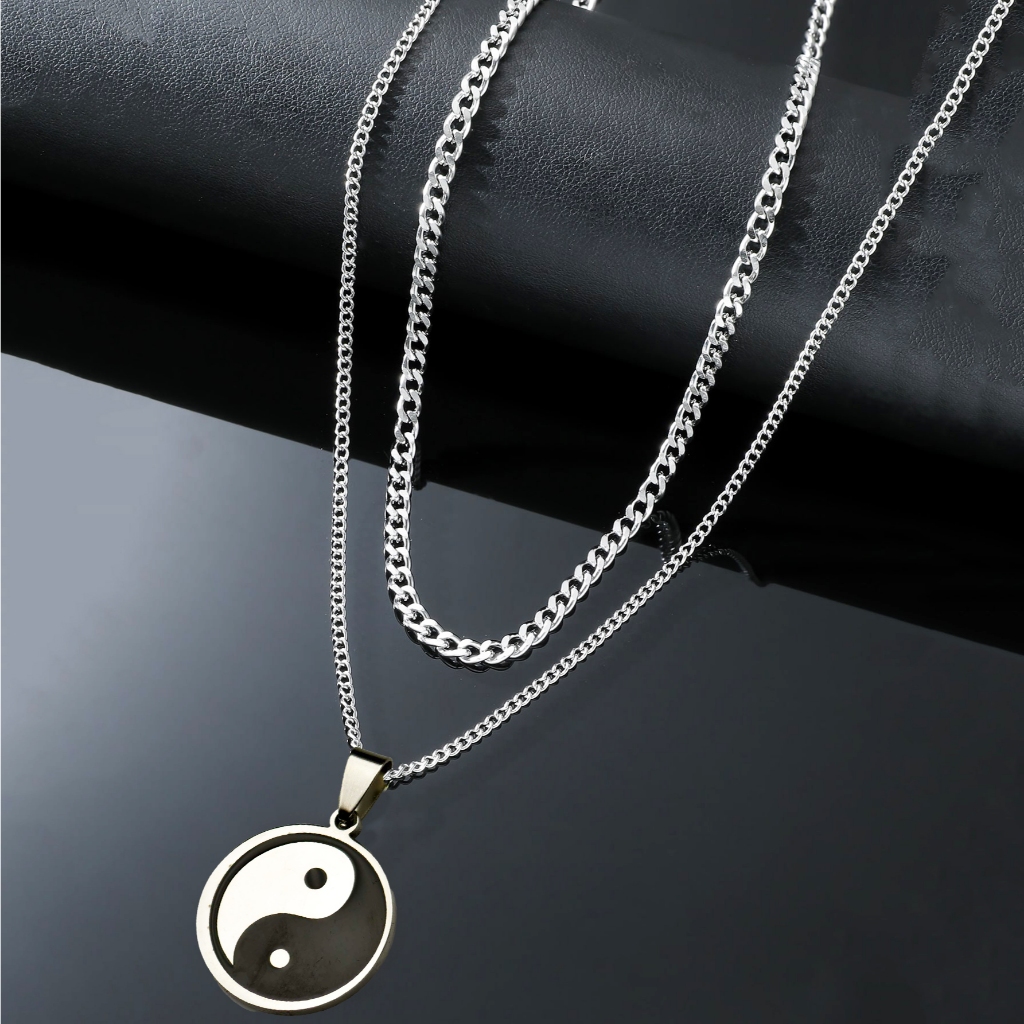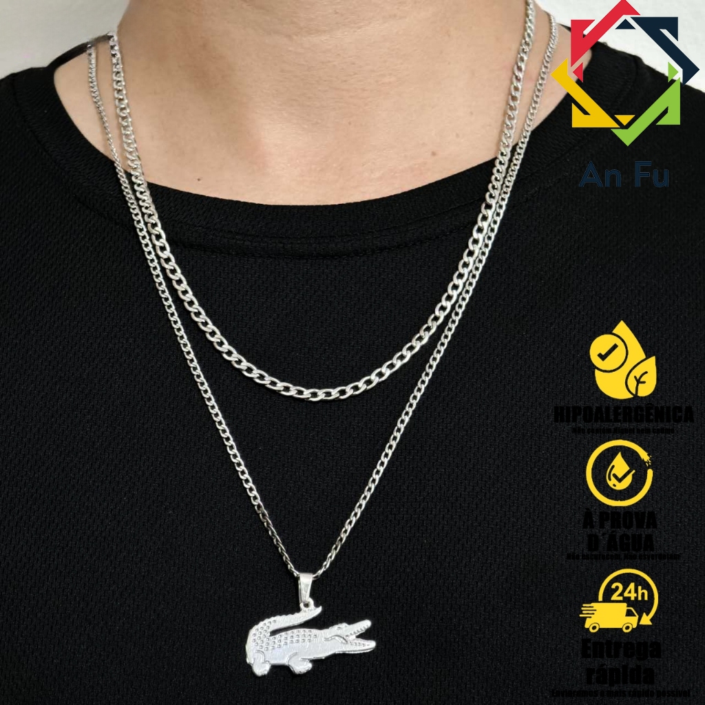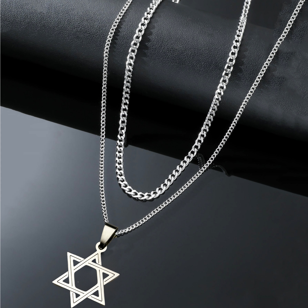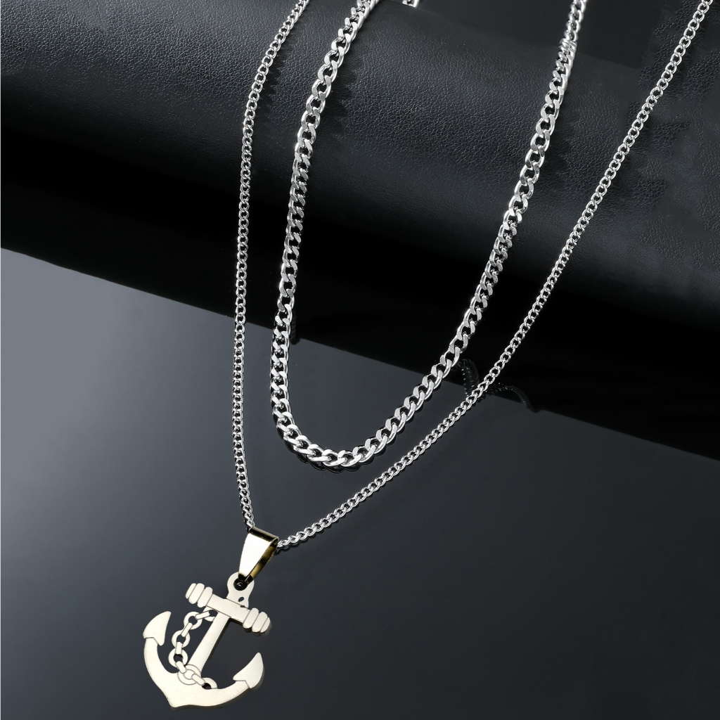 Kit com 2 Correntes Masculinas com Pingente Cruz Palito - Colares Banhados a Prata em Aço Inoxidável