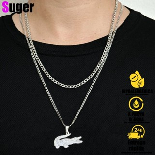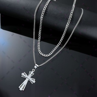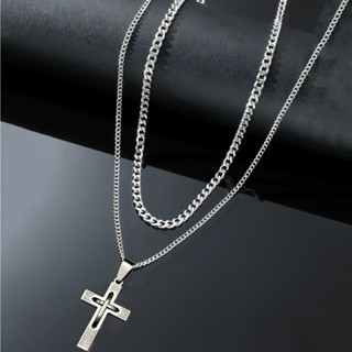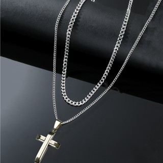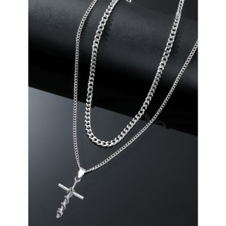 Kit Duplo de Corrente Masculina – Aço Inoxidável com Pingente Cruz Palito Prateada