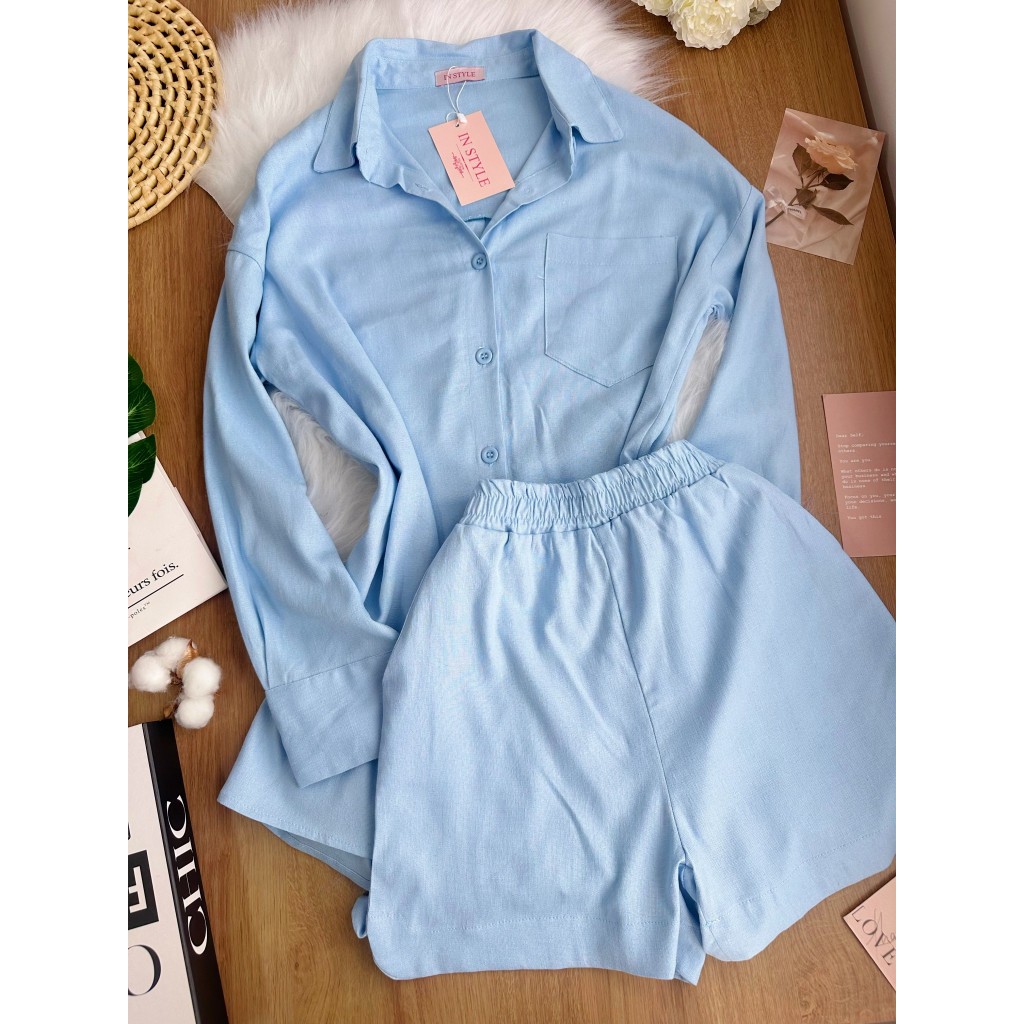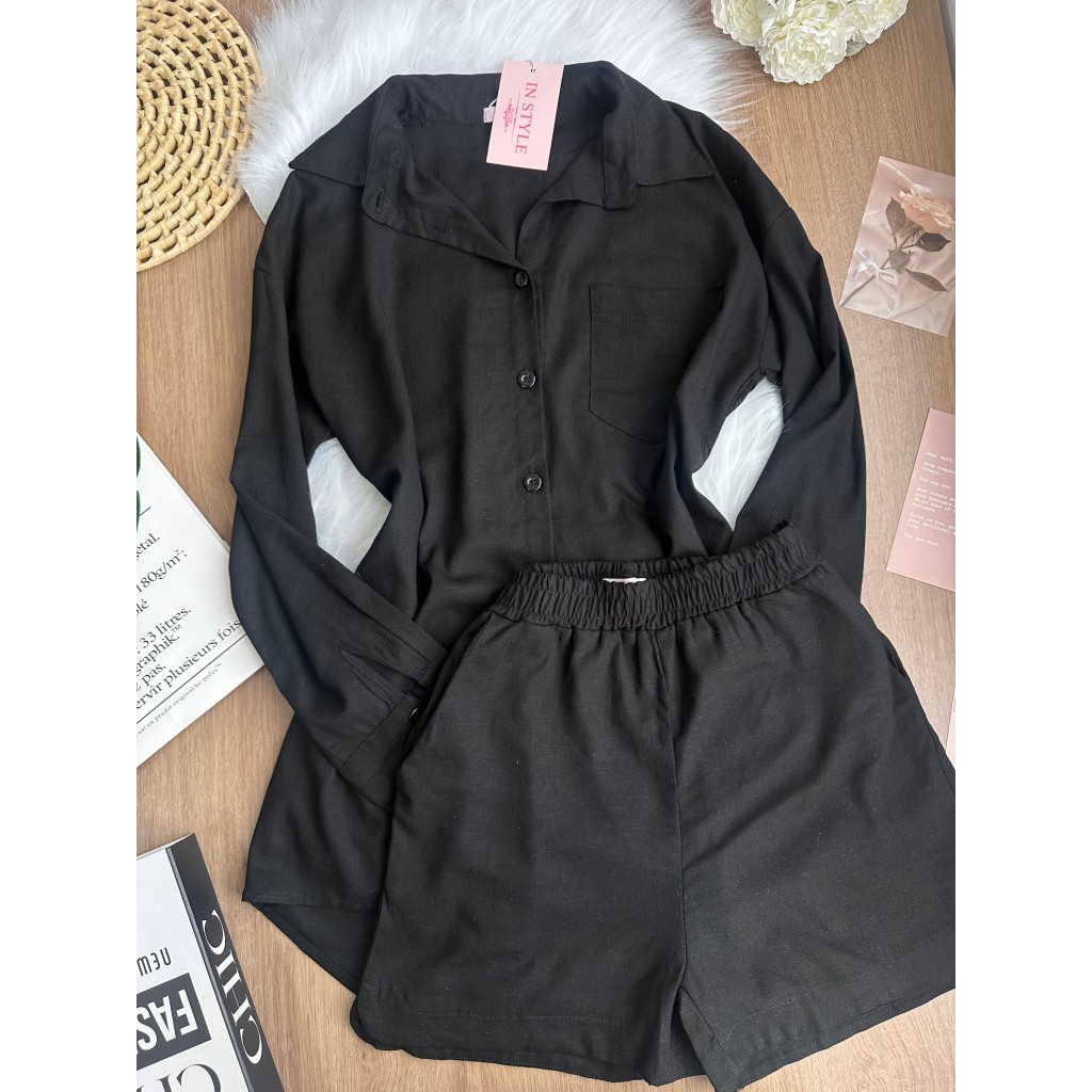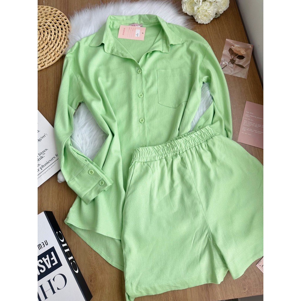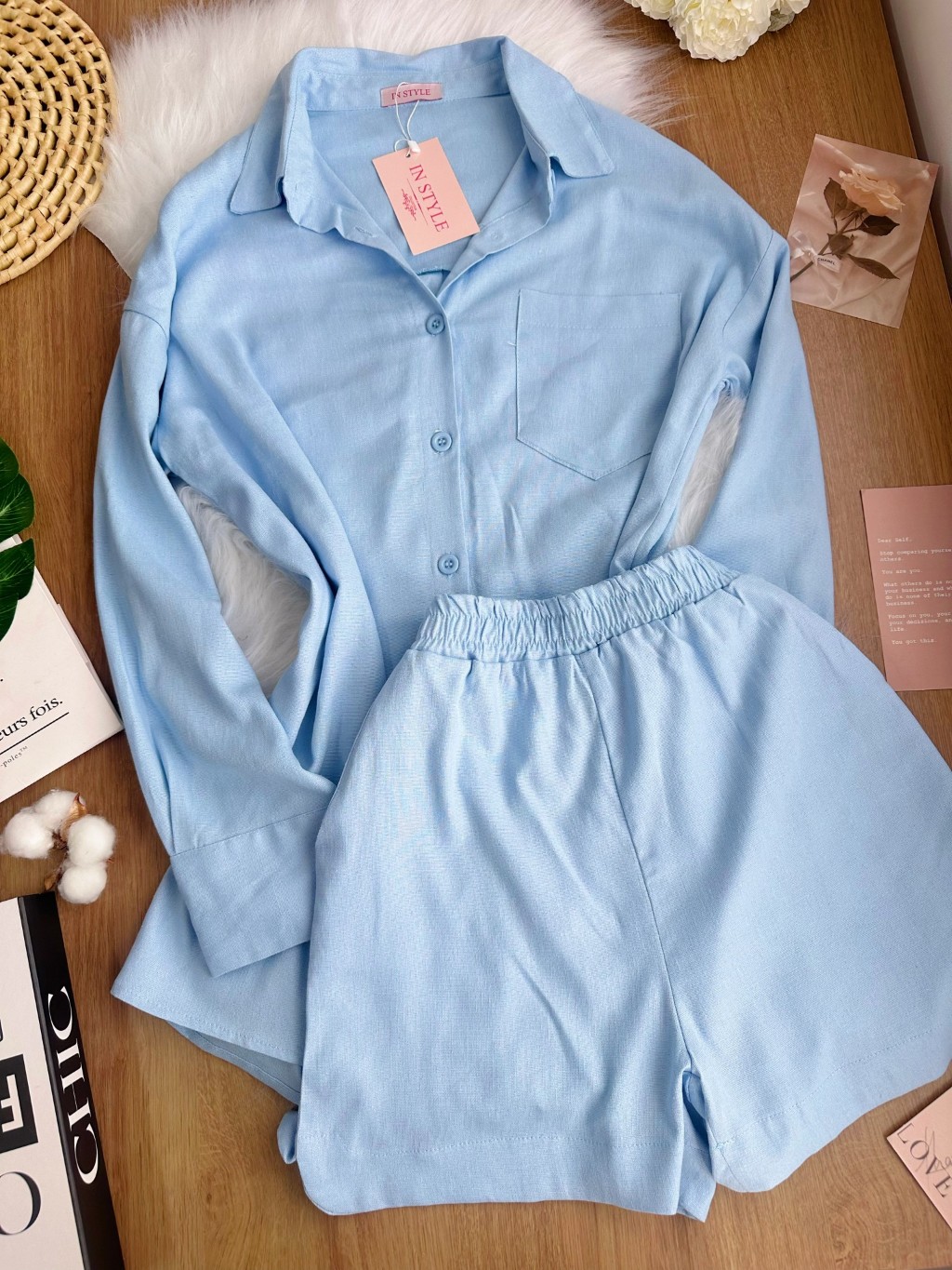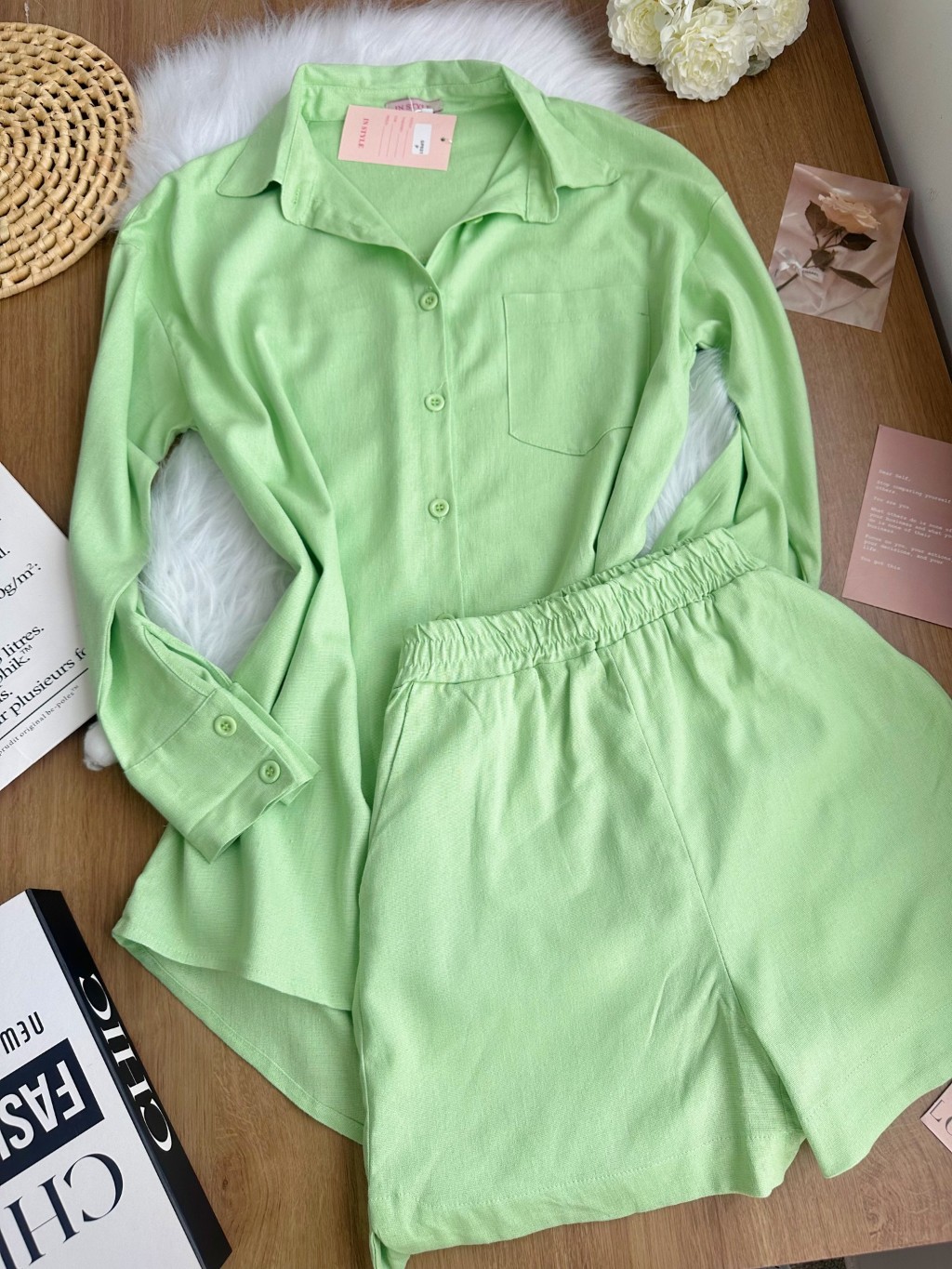 Conjunto Feminino /Camisa e Short / Botões e Bolso / Cintura com Elástico SP021