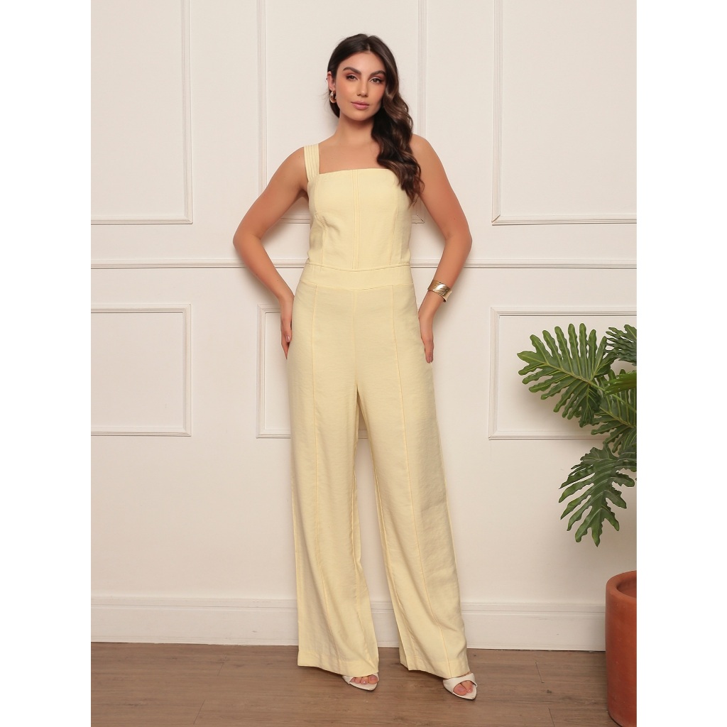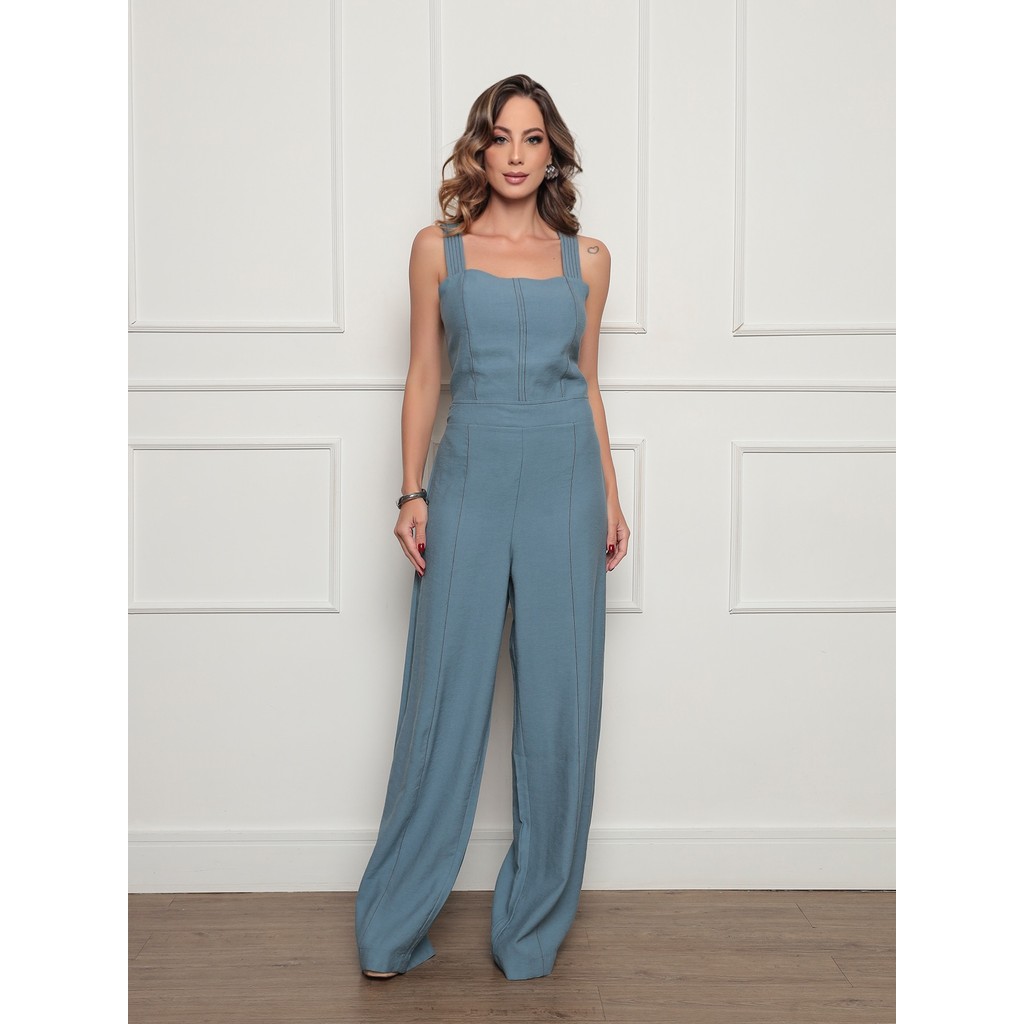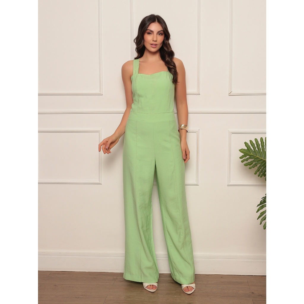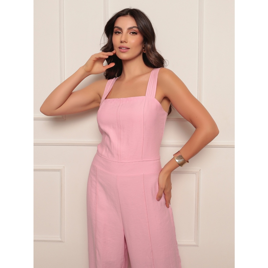 DUOUNO MODAS - MACACAO ELEGANTE FEMININO DE ALÇA EM MARANTE COM PESPONTOS E ZÍPER - MACACOES