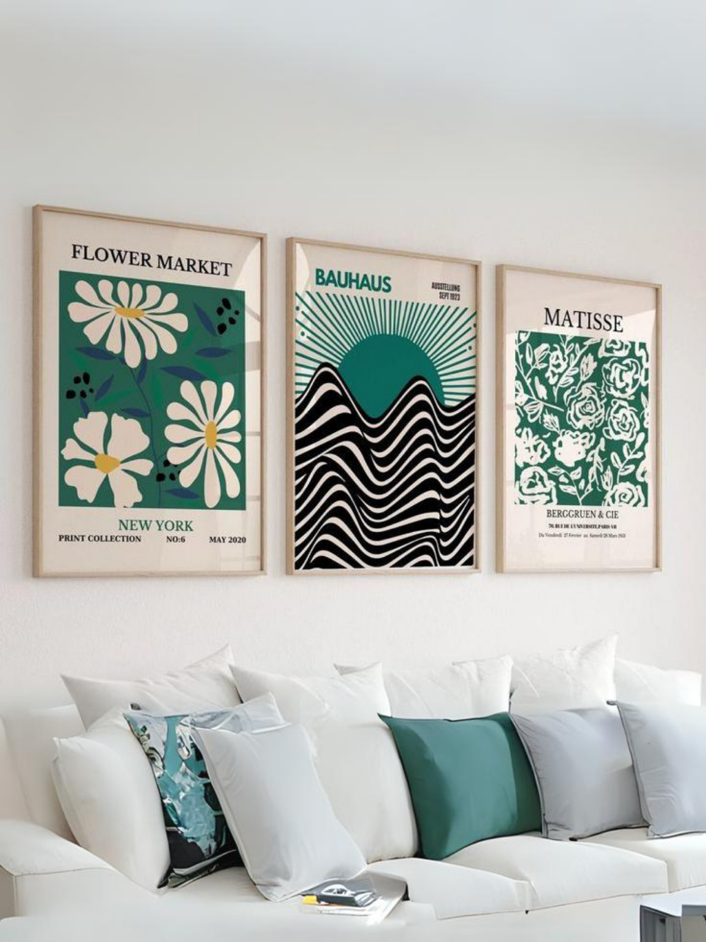 Kit 3 Quadros Decorativos Bauhaus Matisse Flowers