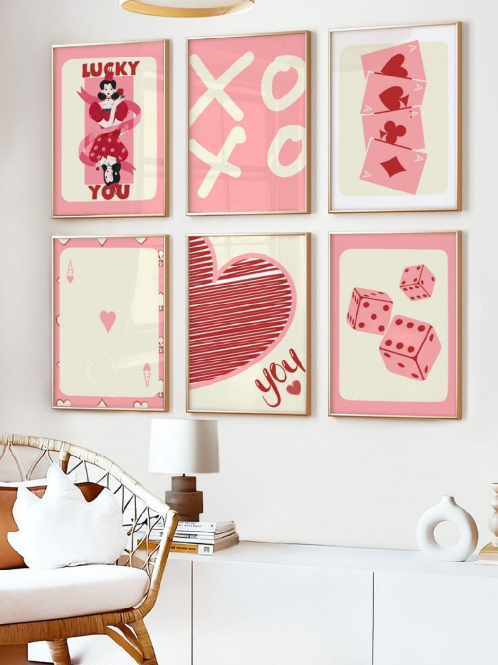 Kit 6 Quadros Decorativos Rosa Xo Xo Feminino - Perfeito para Quarto e Sala