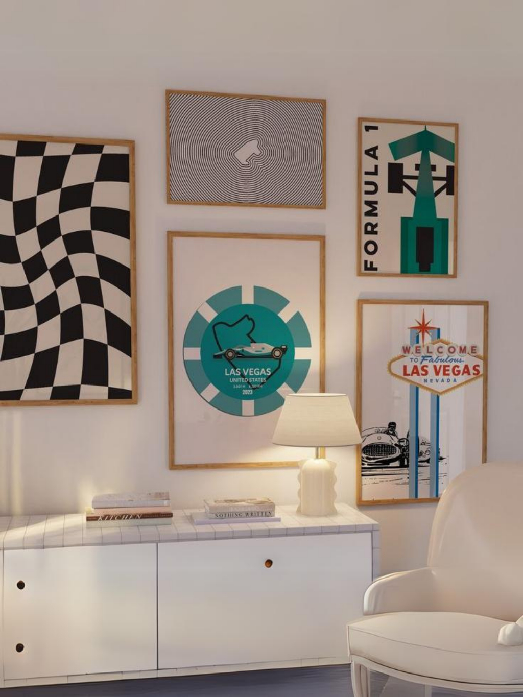 Kit 5 Quadros Decorativos Las Vegas Formula 1 Moderno