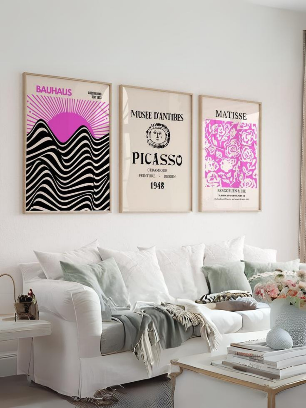 Kit 3 Quadros Decorativos Bauhaus Picasso Matisse Rosa
