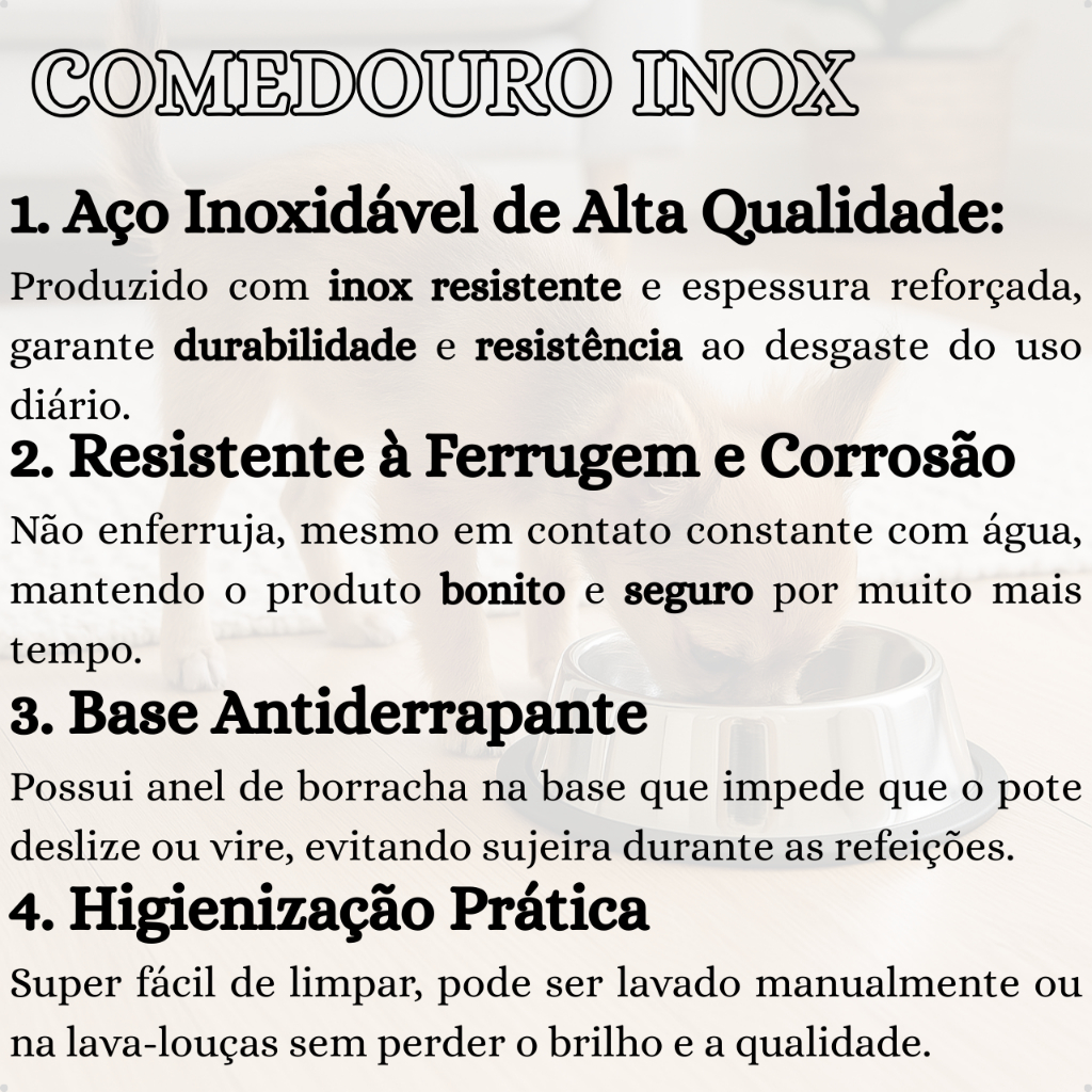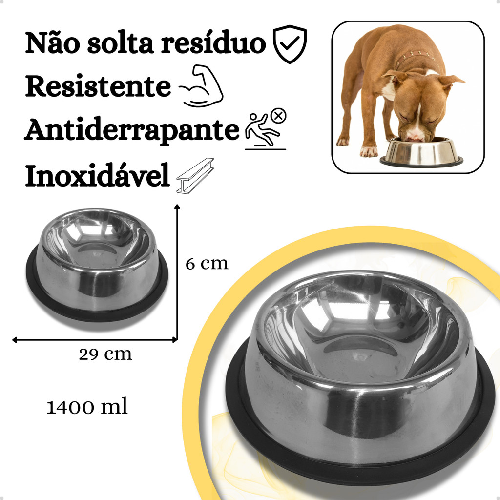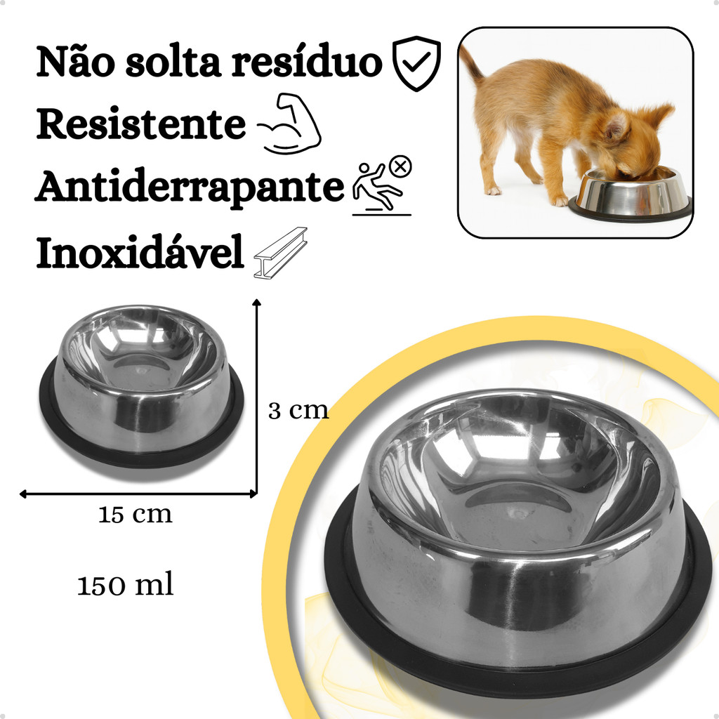 Comedouro e Bebedouro Pote Inox de Ração e Água para Cachorro e Gato Grande - Vários Tamanhos