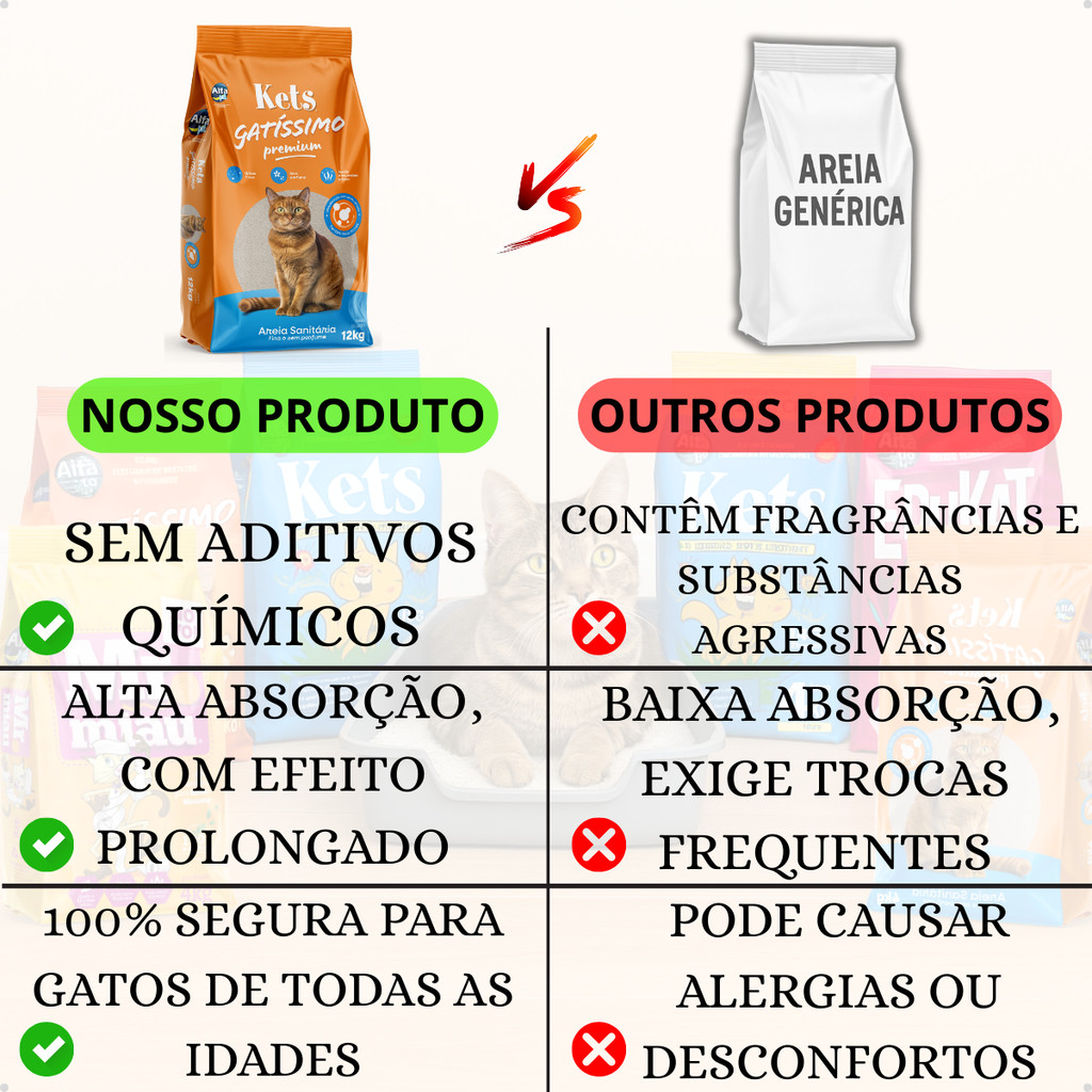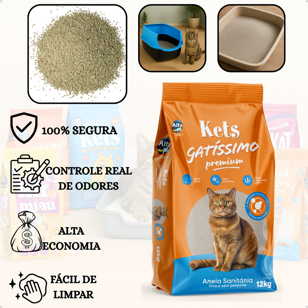 Kit 2 Areia Sanitária Higiênica Natural Argila Gatos Premium Gatissimo Sem Perfume Grãos Médios 12Kg