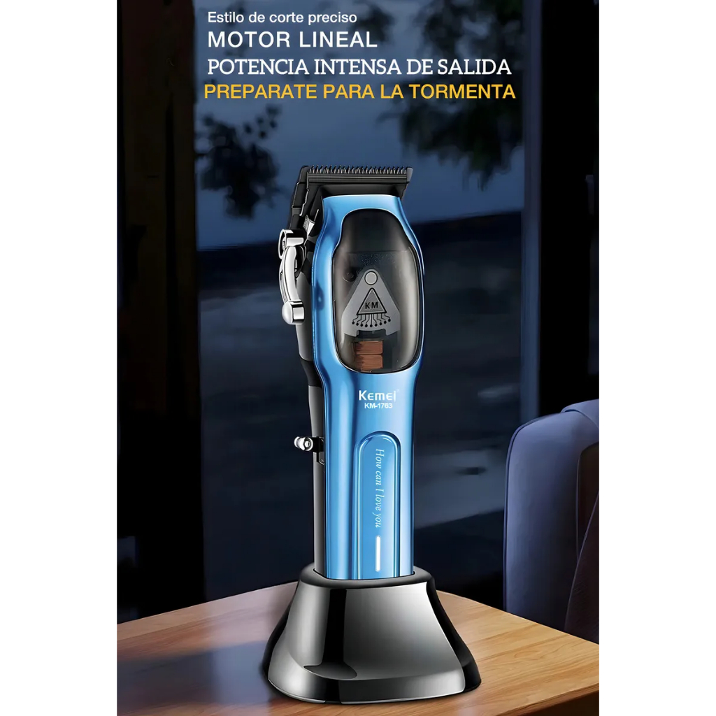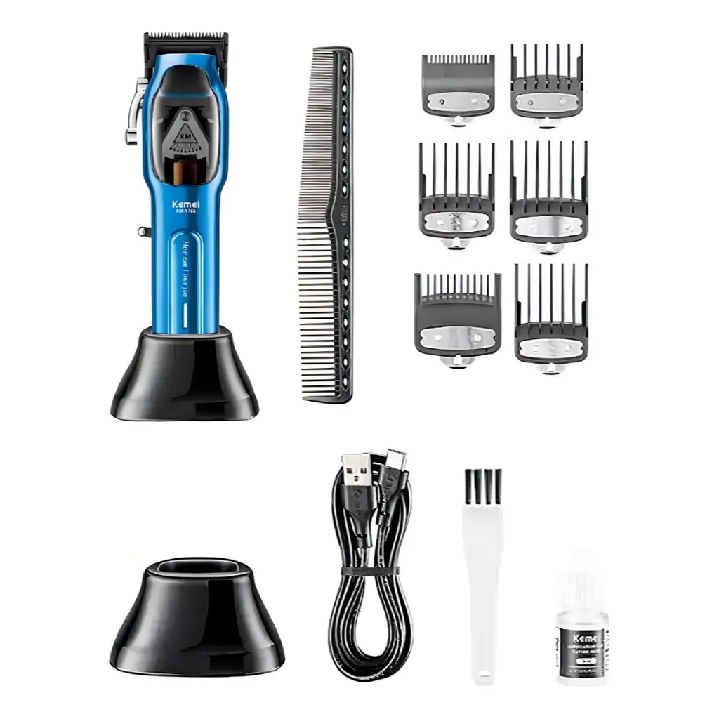 Maquina Cortar Cabelo Sem Fio Profissional Base Ultra Potente Kemei Km-1763