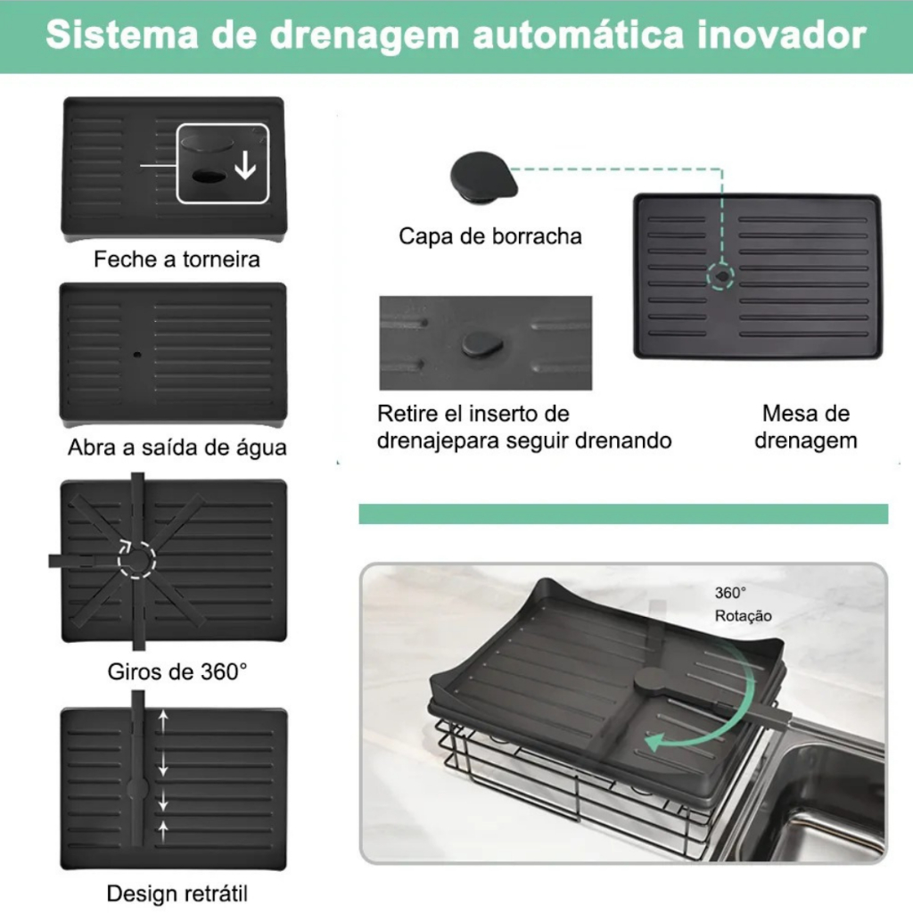 Escorredor Organizador de Louças Em Aço Inoxidável Rack Cozinha Suspensa