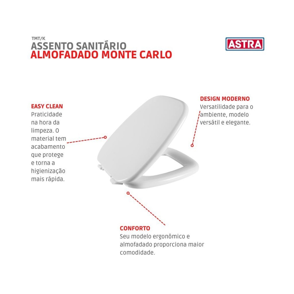Assento Sanitário Almofadado Monte Carlo Tmt/k Branco Gelo Astra
