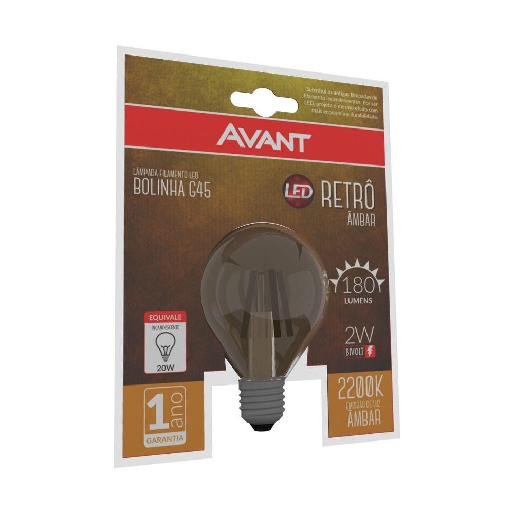 Kit 3 Lâmpada Led Casa Retro G45 Bolinha 2W Ambar 2200K E27 Avant