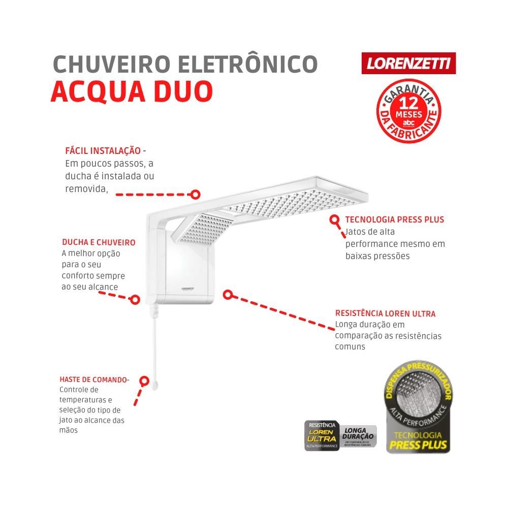 Chuveiro Eletrônico Acqua Duo Ultra 127v 5500w Branco Lorenzetti