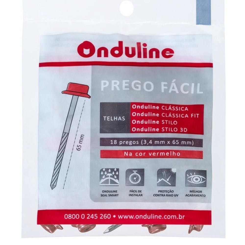 Kit Fixação Prego Fácil Com 18 Unidades Vermelho/Marrom Onduline 3,4x65mm