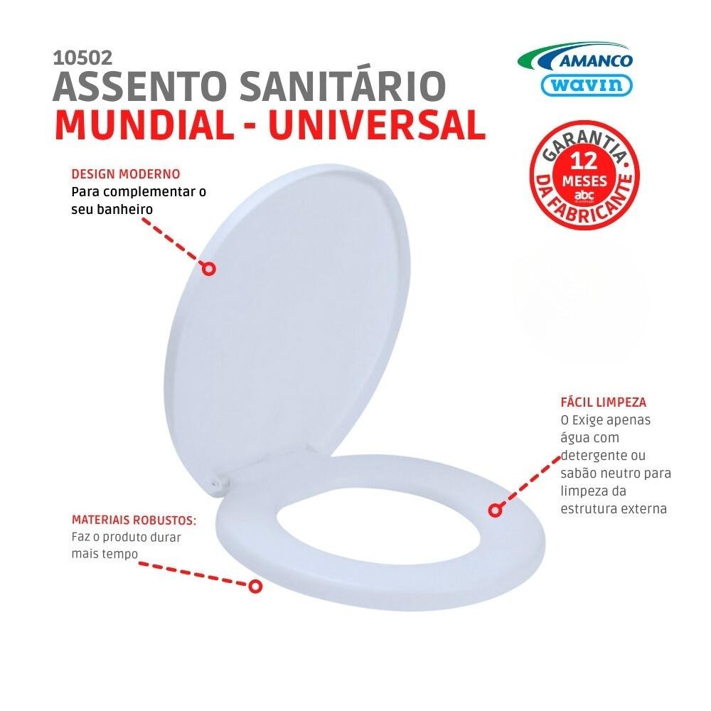 Assento Sanitário Mundial Branco Oval Universal Plástico Amanco