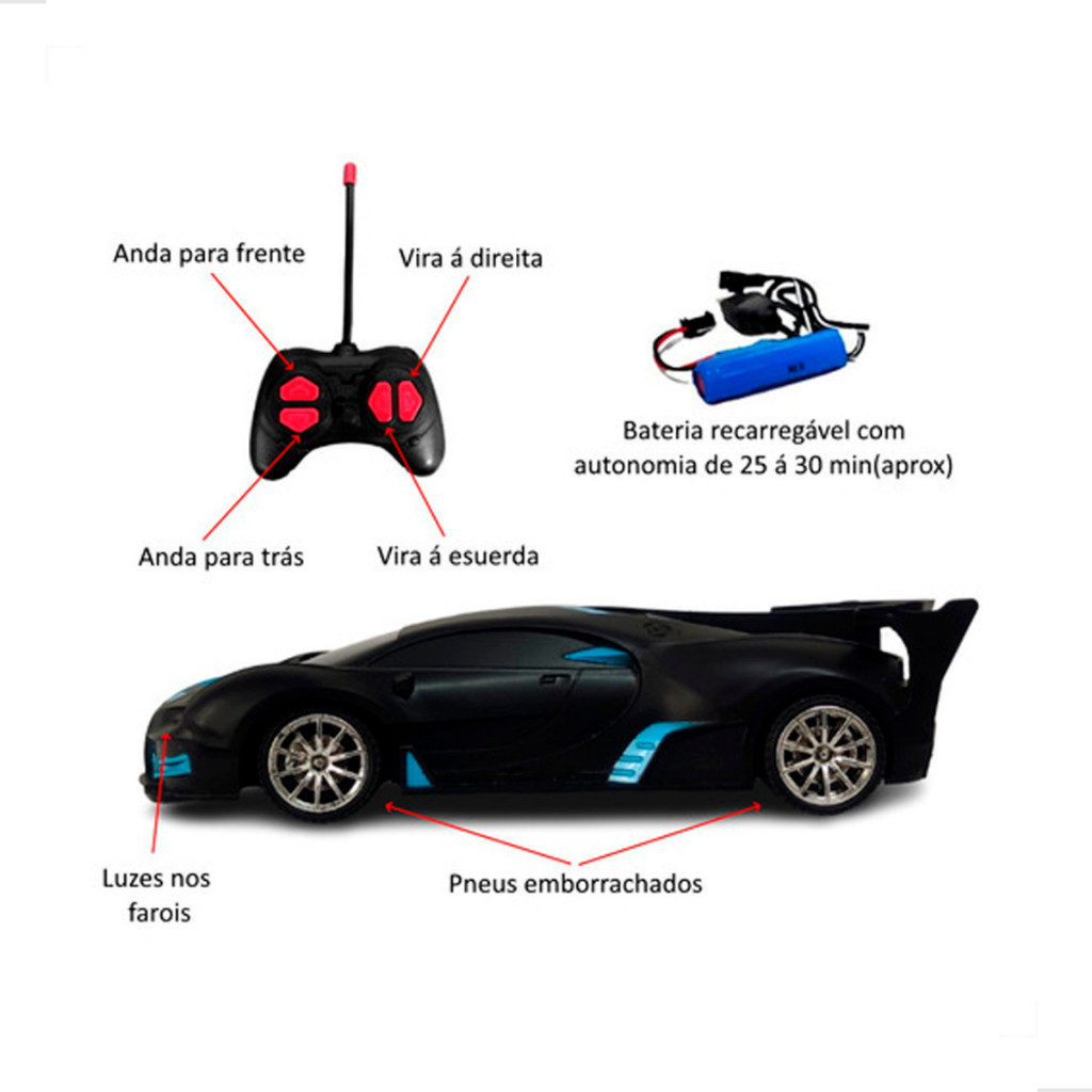 Carrinho de Controle Remoto Recarregável Brinquedo Esportivo Automodelo Ferrari Lamborghini Bugati