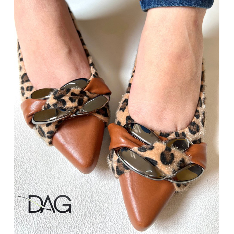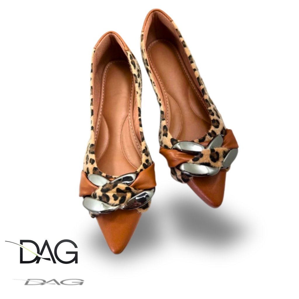 Sapatilha Feminina Onça Pêlo | Pele Caramelo – Bico fino, macia, sofisticada, charmosa, elegante.