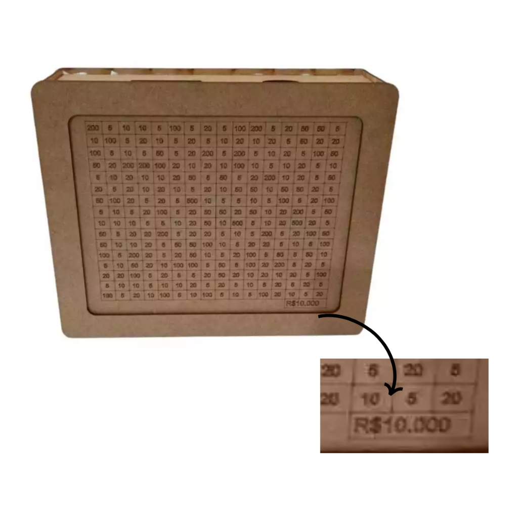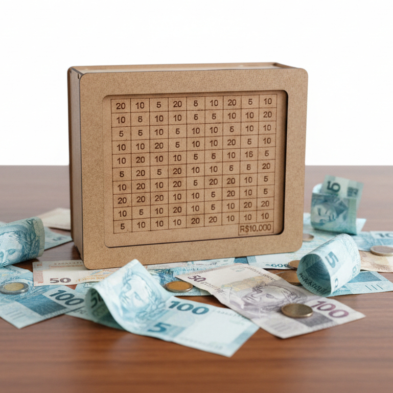 Cofre Desafio 10mil/5mil/1mil - Caixa Dinheiro Madeira - Método Japonês - Escolha seu Objetivo!