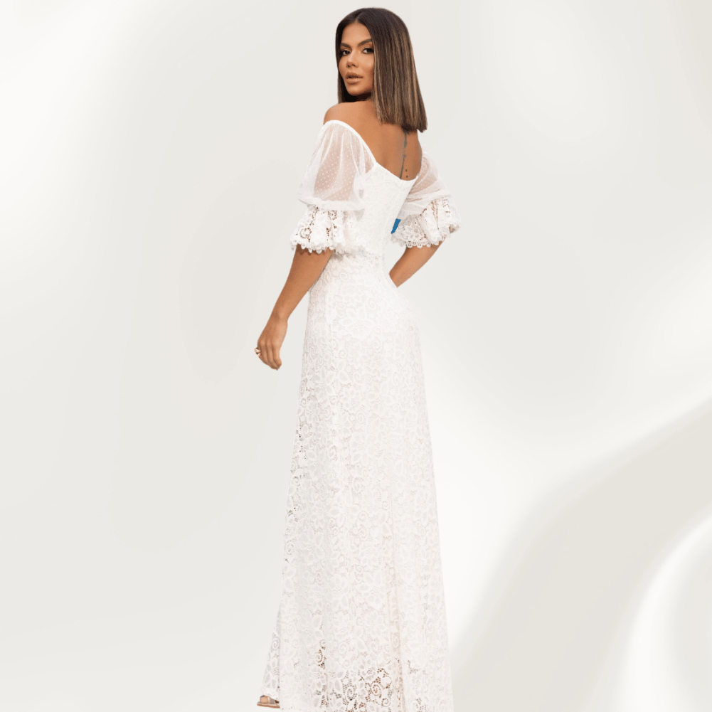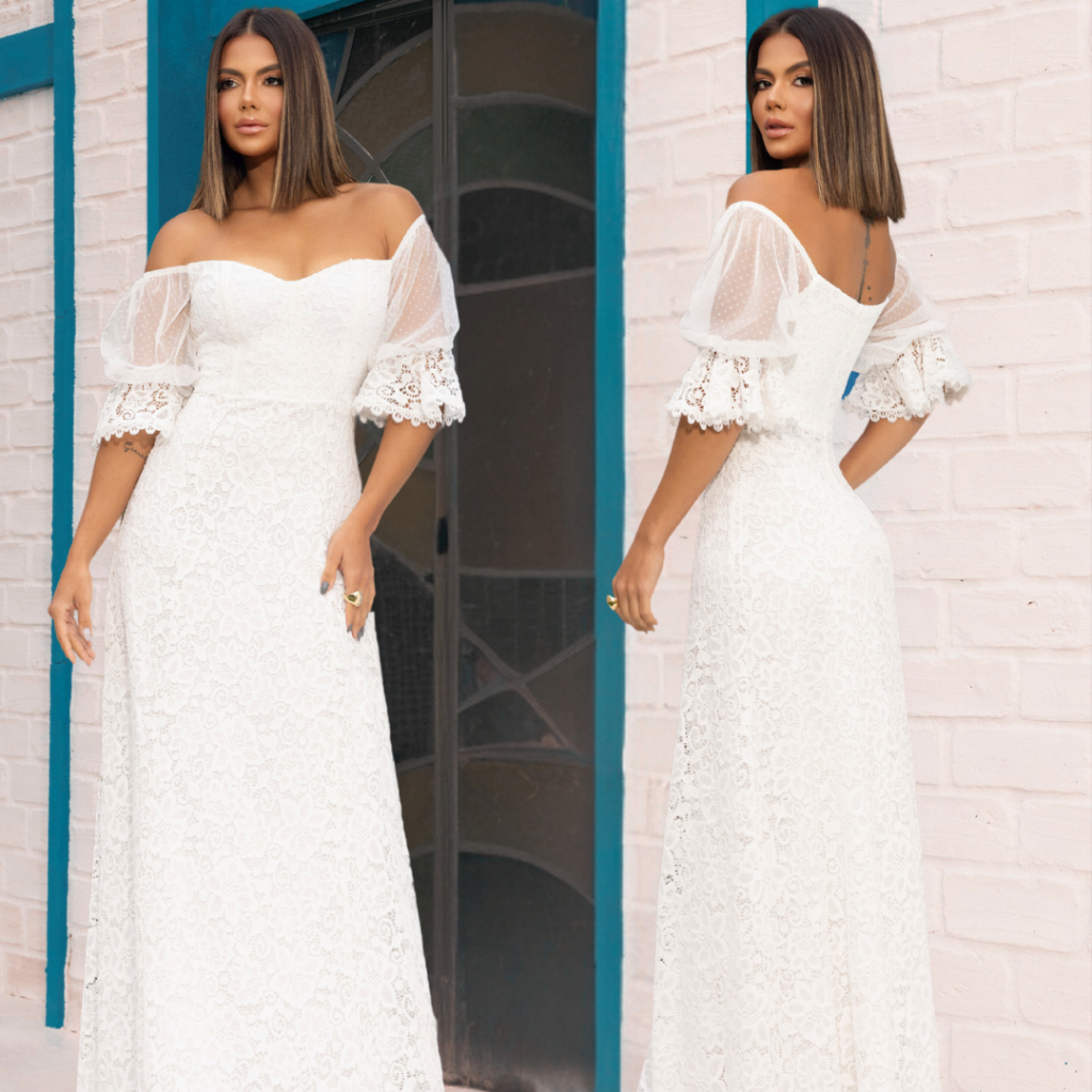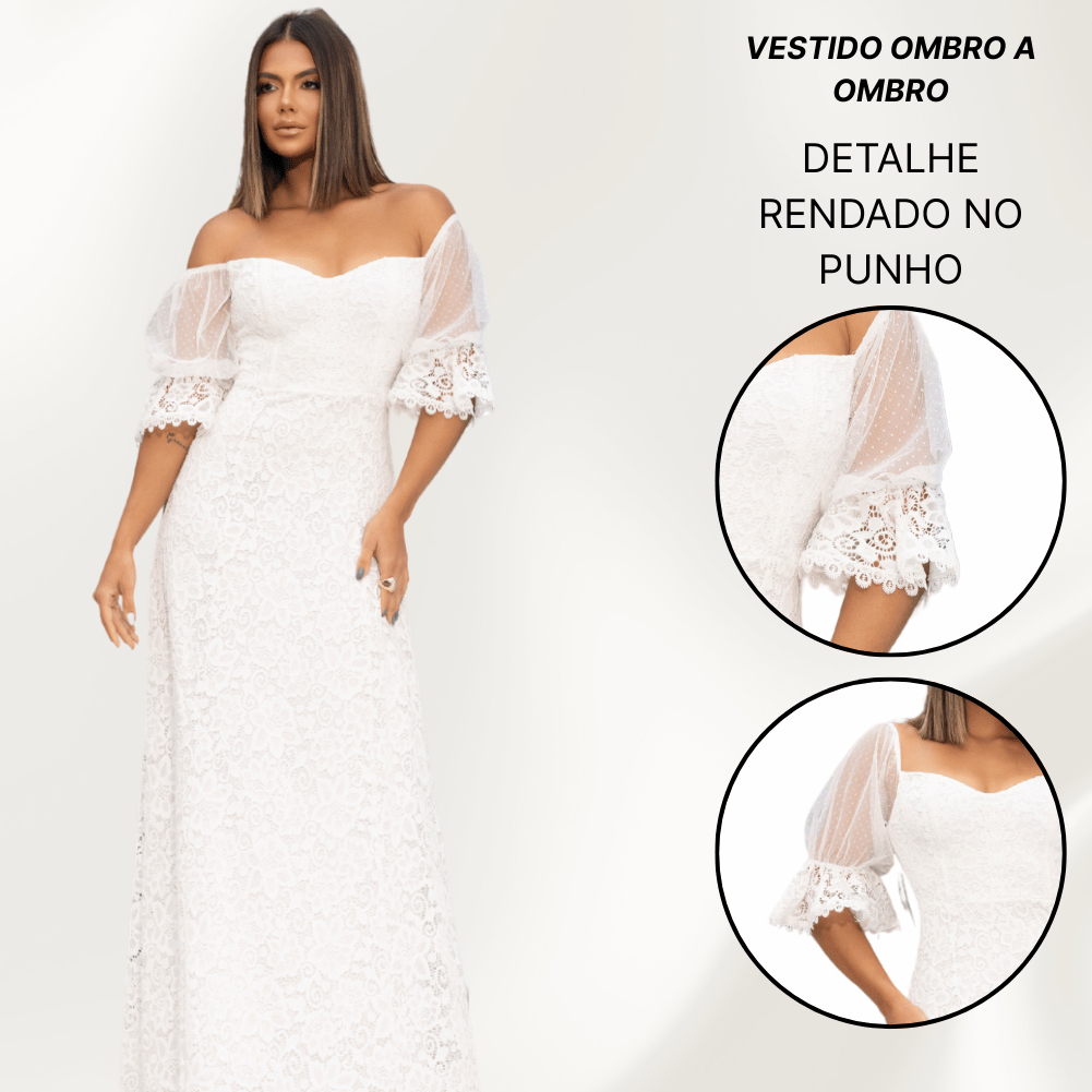 Vestido Noiva Feminino Ombro a Ombro Tomara que Caia Manga Renda Elegante Confortável Noiva