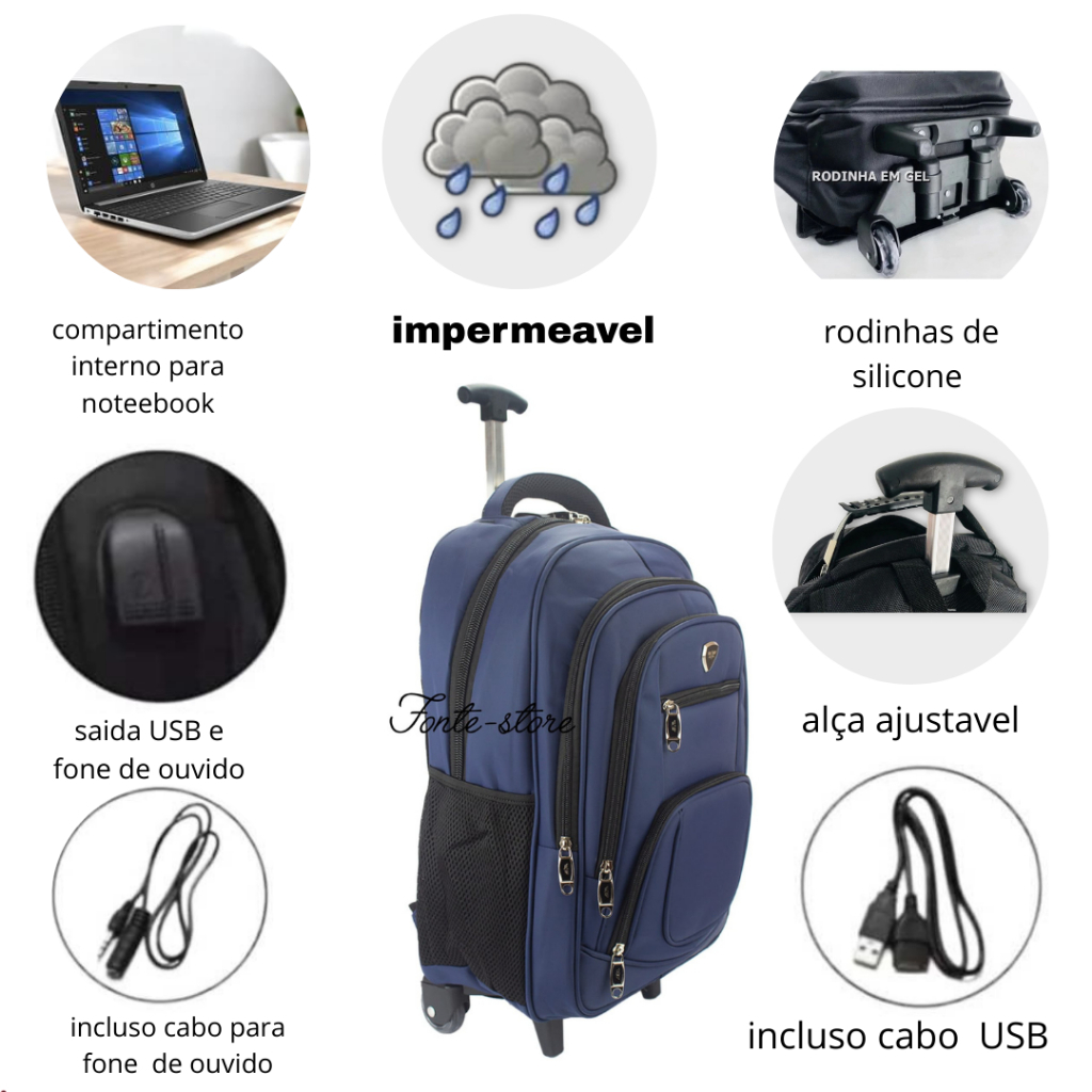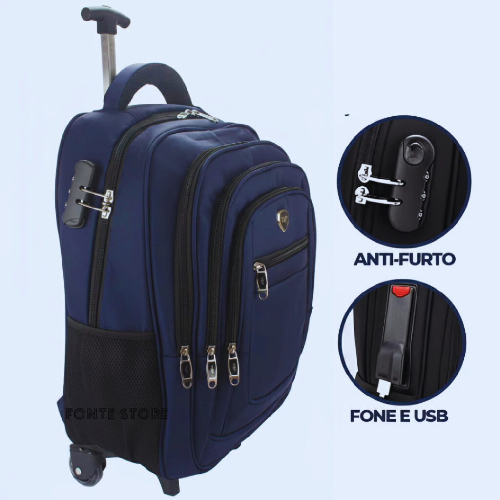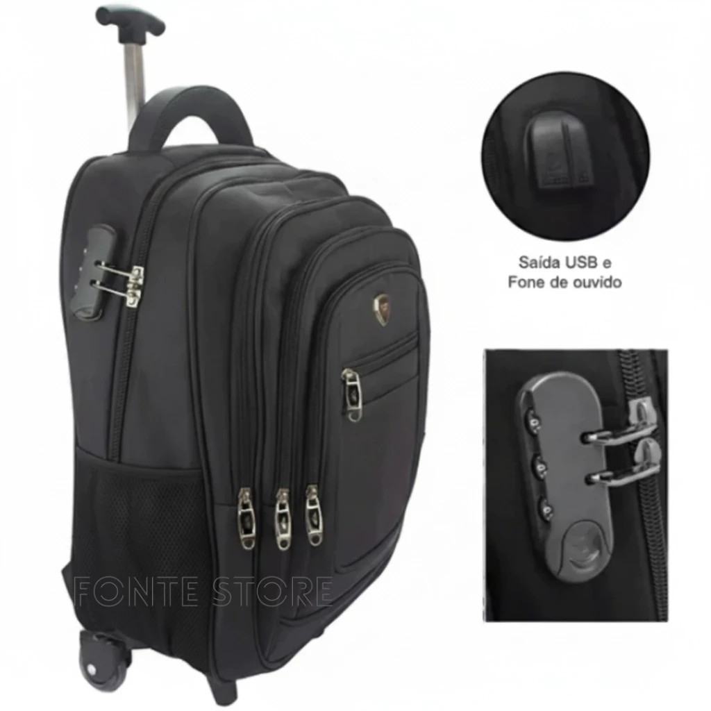 Mchila De Rodinha Reforçada Executiva Grande Impermeavel Trabalho Escola Facultade