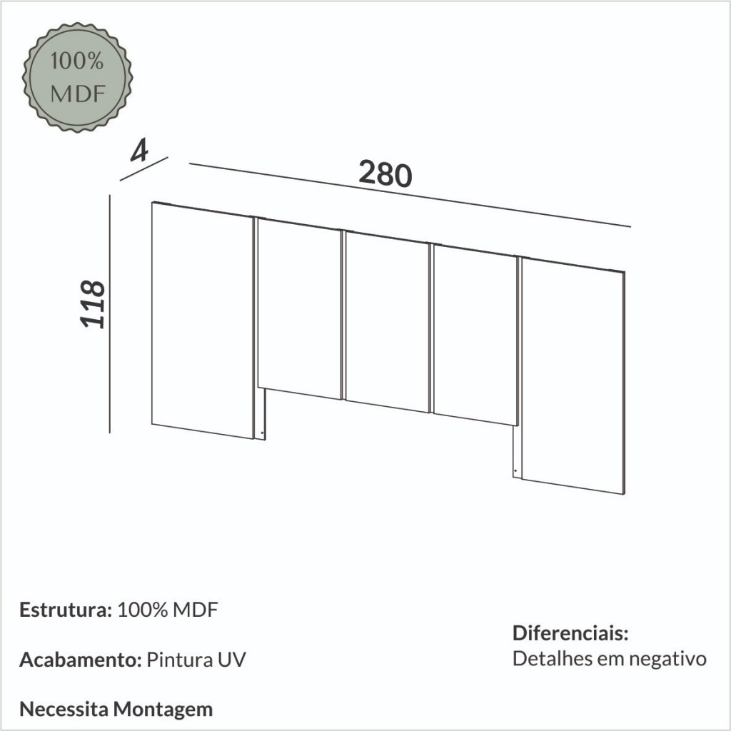 Cabeceira Queen 280cm Lisa Off White - Dalla Costa