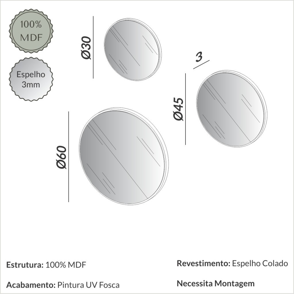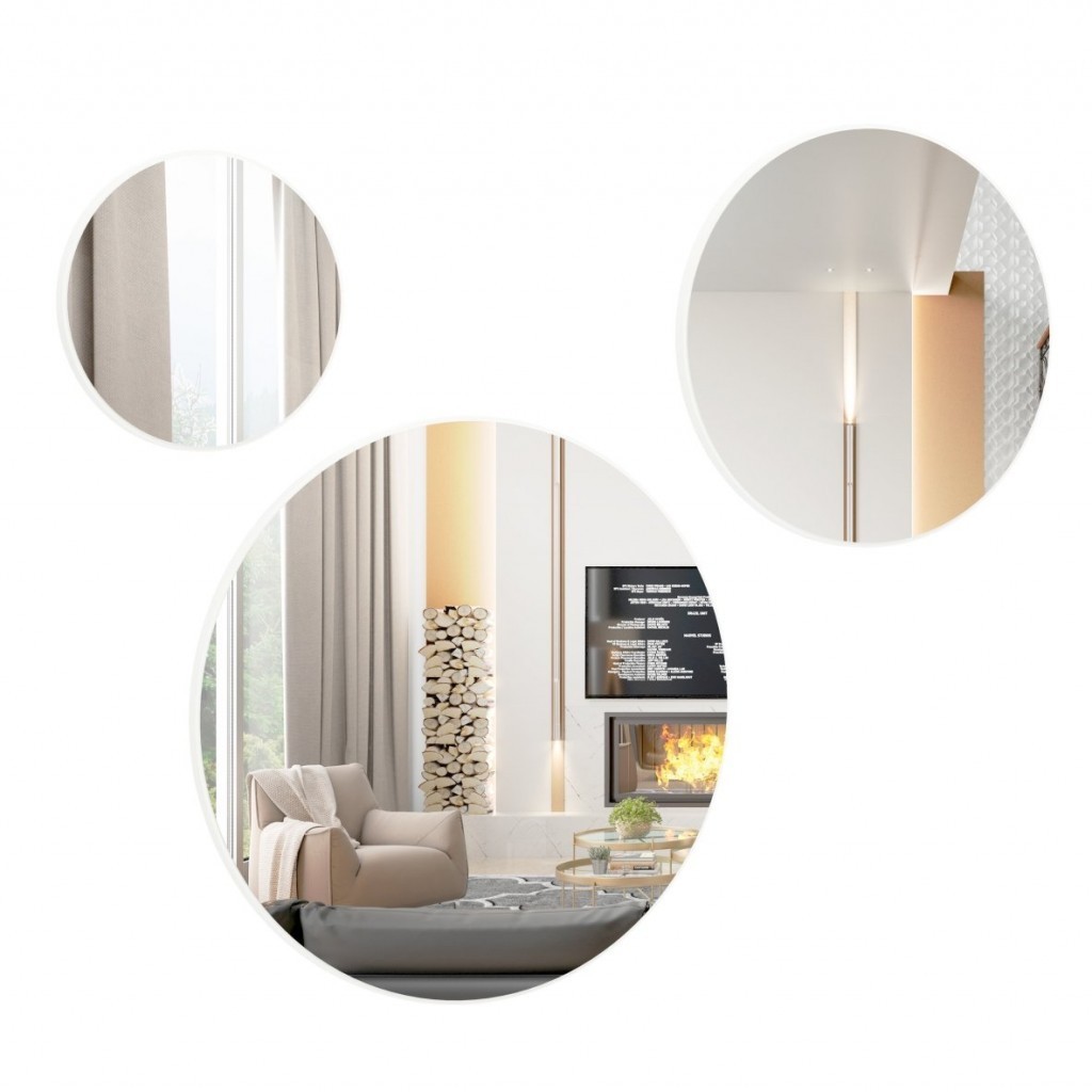 Espelhos Kit 3 Painéis Espelhados Redondos Decorativos Basic ES15 Off White - Dalla Costa