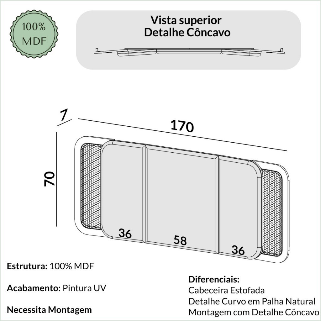 Cabeceira Tela Natural Curve Freijó - Dalla Costa