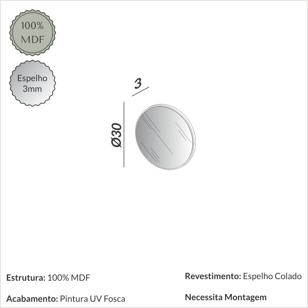 Painel Espelhado Redondo Decorativo Basic ES9 Off White - Dalla Costa