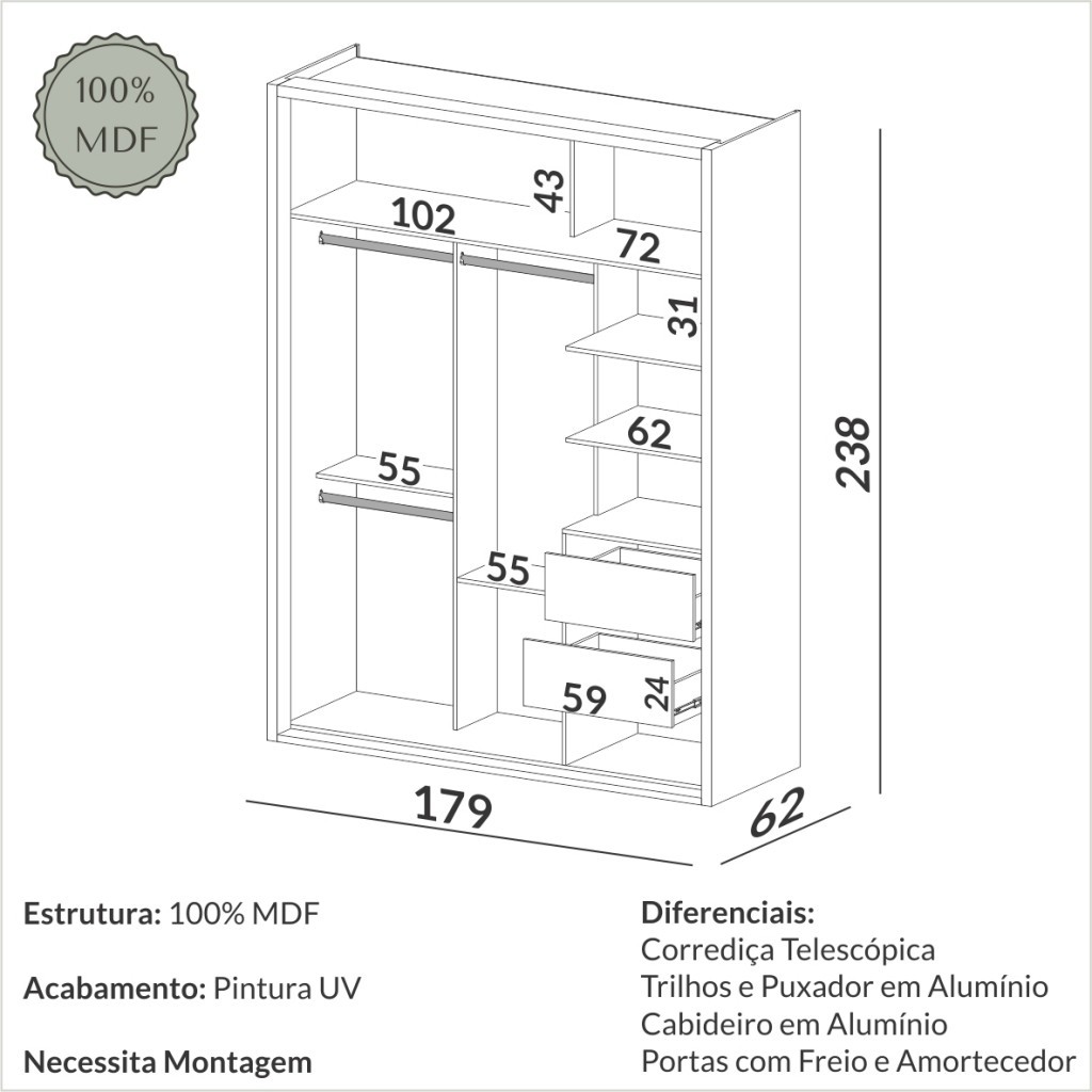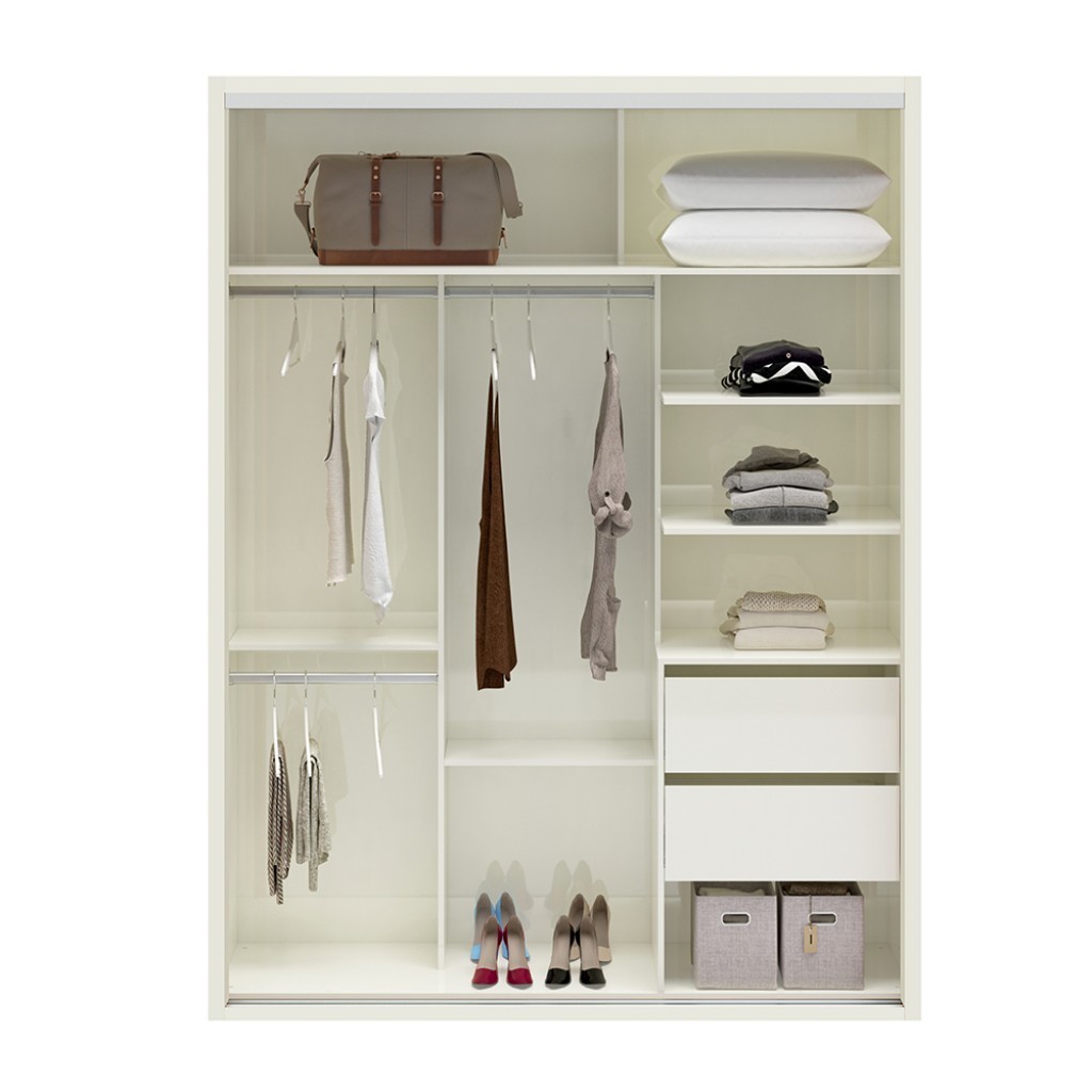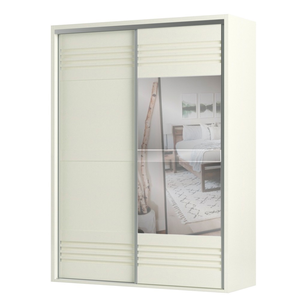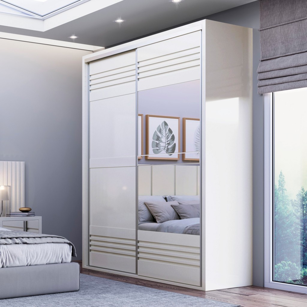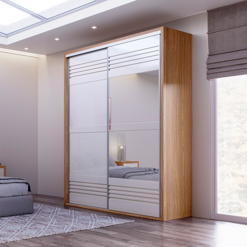 Guarda-Roupa 2 Portas de Correr 2 Gavetas Espelhado Ripado