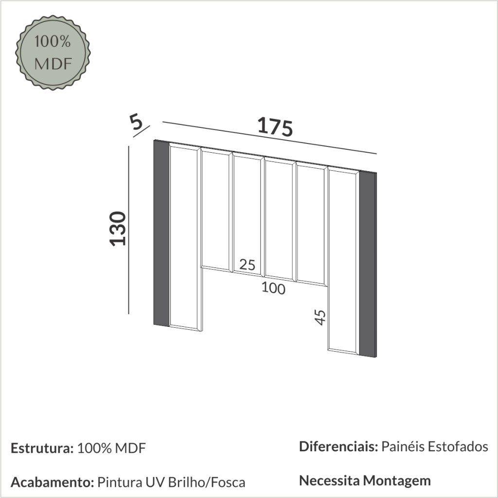 Cabeceira Estofada Casal Reta Basic J25 Freijó/Verde - Dalla Costa