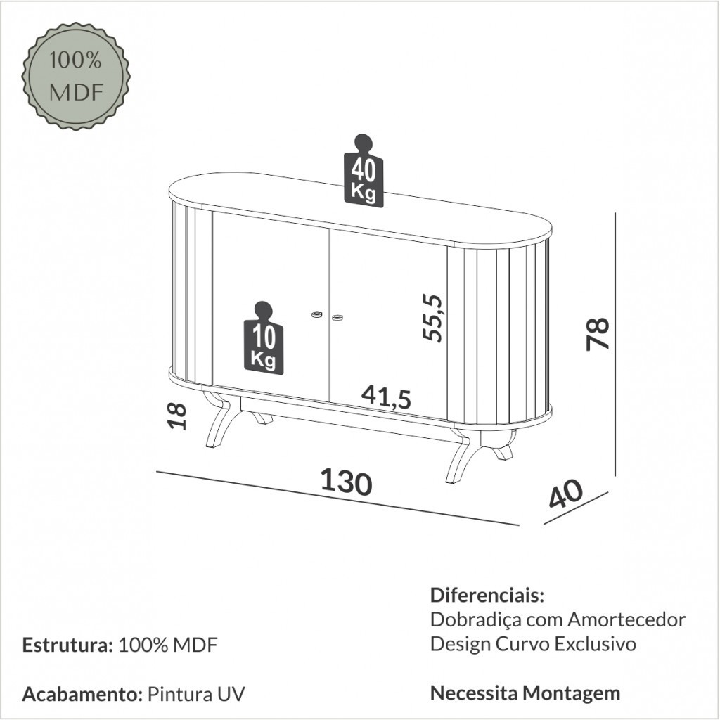 Balcão 2 Portas Nature Freijó/Preto - Dalla Costa