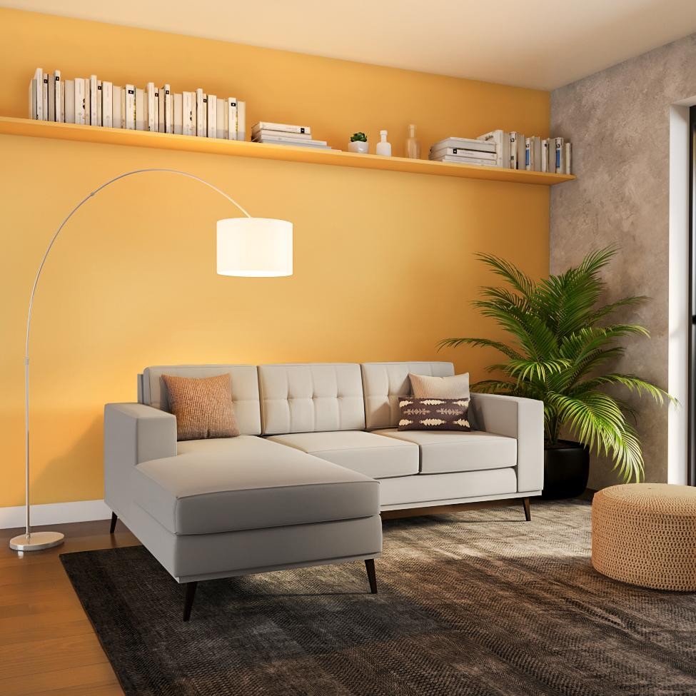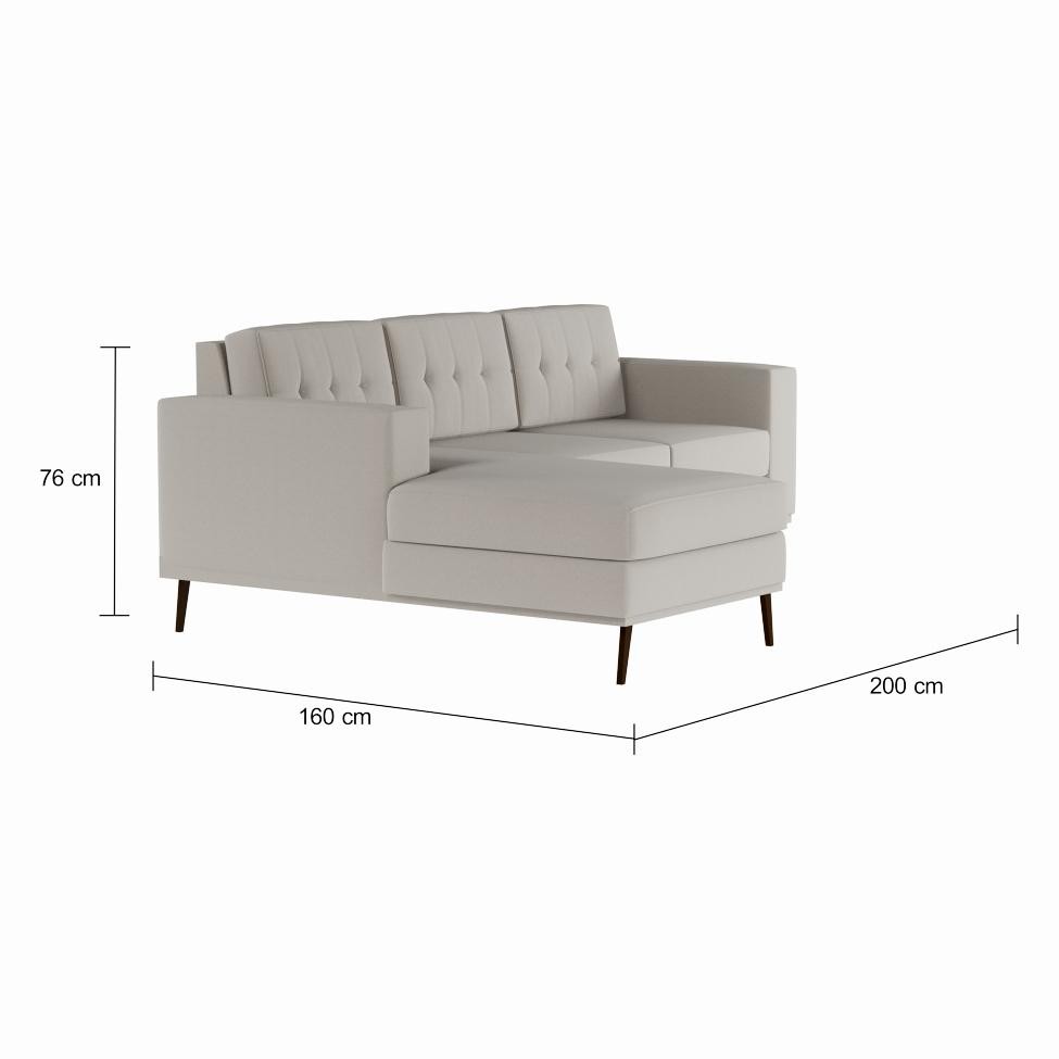 Sofá 3 Lugares Leave com Chaise Esquerdo Pé Palito Linho Cotton Cru