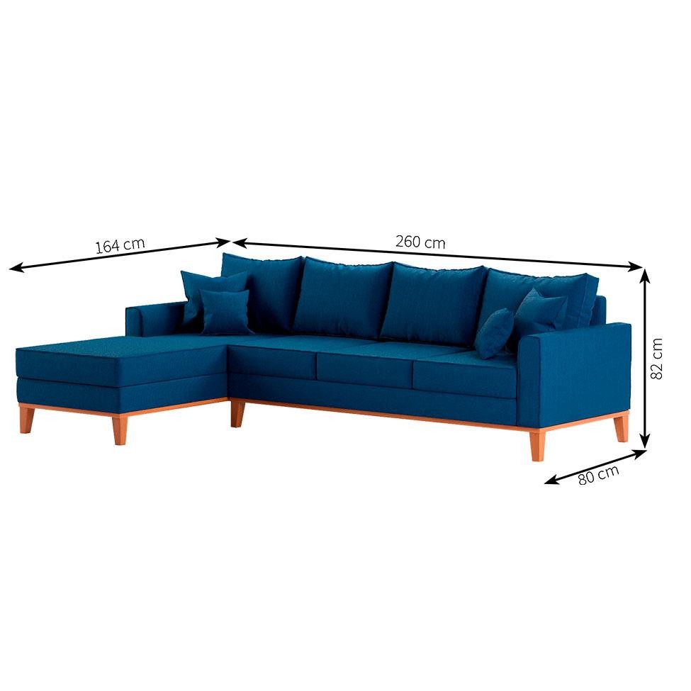 Sofá 4 Lugares Beny Com Chaise Esquerdo Linho Azul Marinho