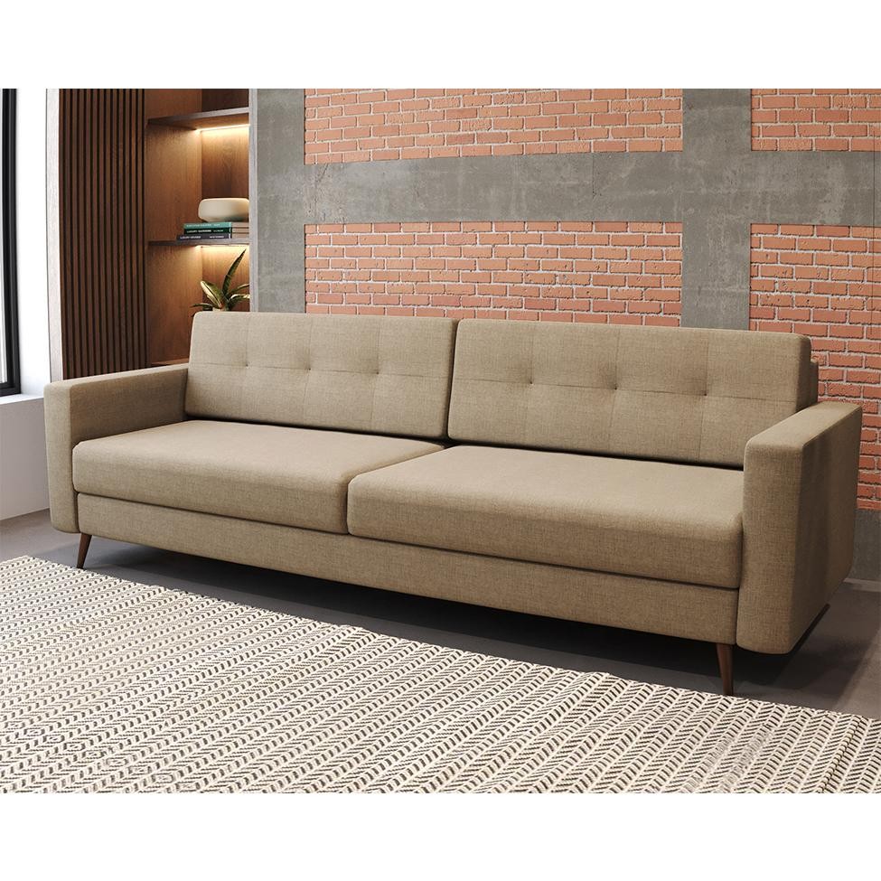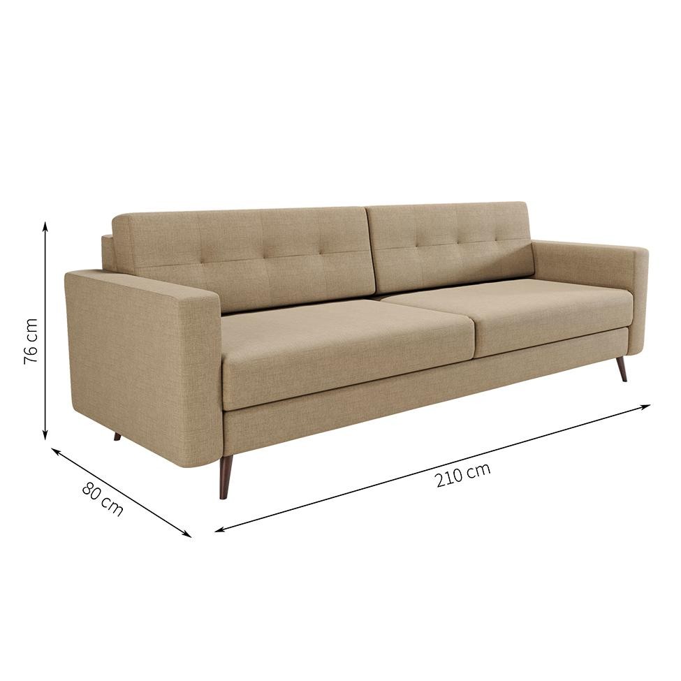 Sofá 3 Lugares Living Pé Palito Linho Cotton Bege 210 cm