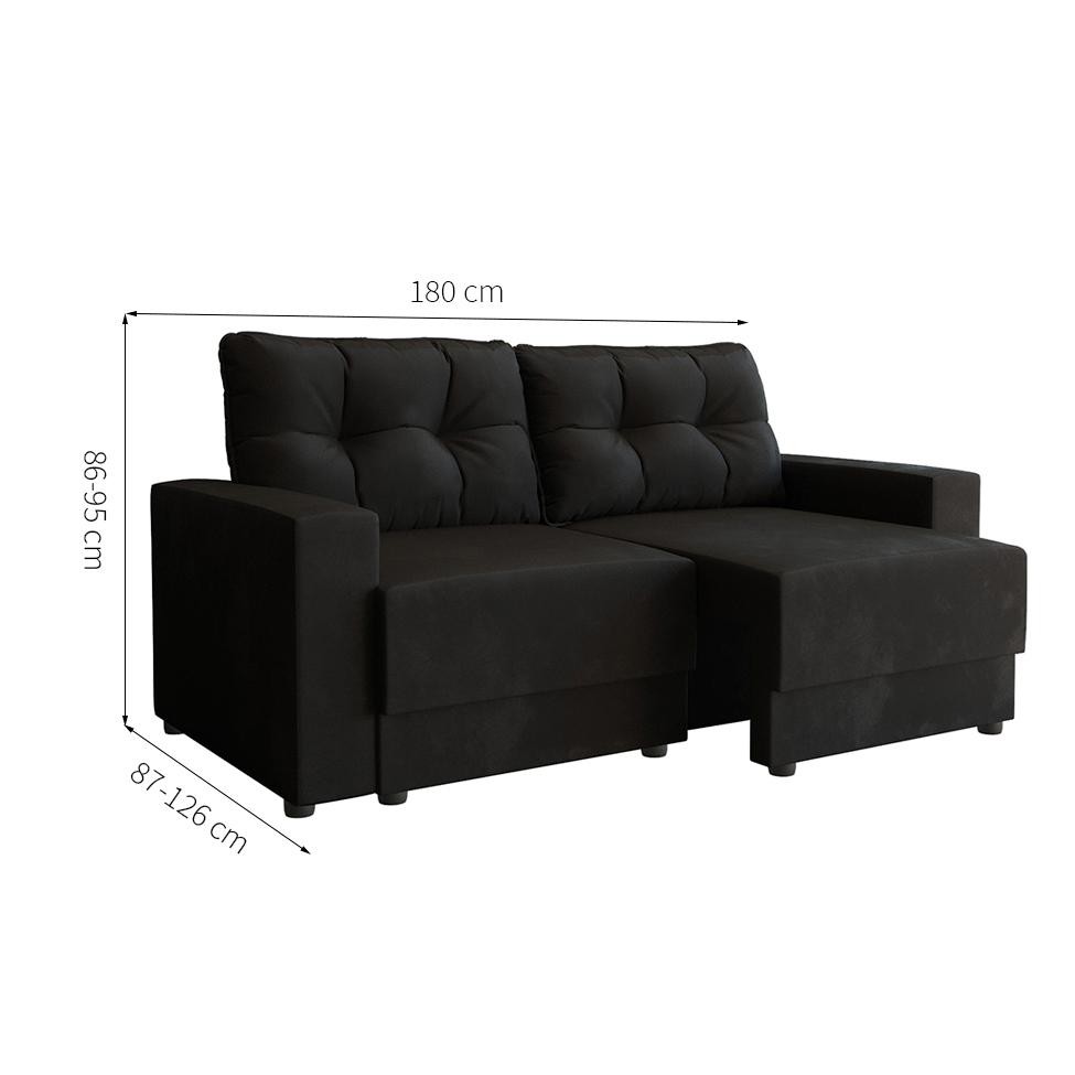 Sofá 3 Lugares Retrátil Lubeck Suede Preto 180 cm