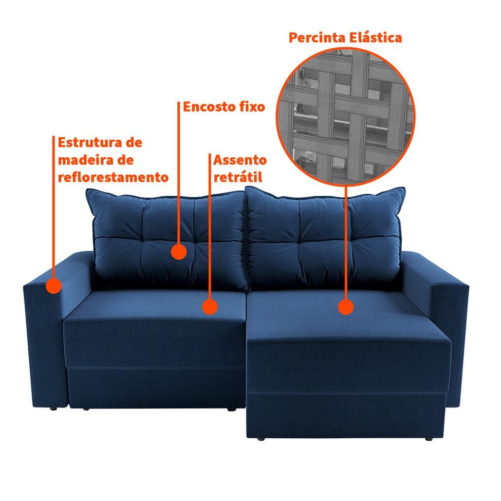 Sofá 3 Lugares Retrátil Lubeck Suede Azul Marinho 180 cm
