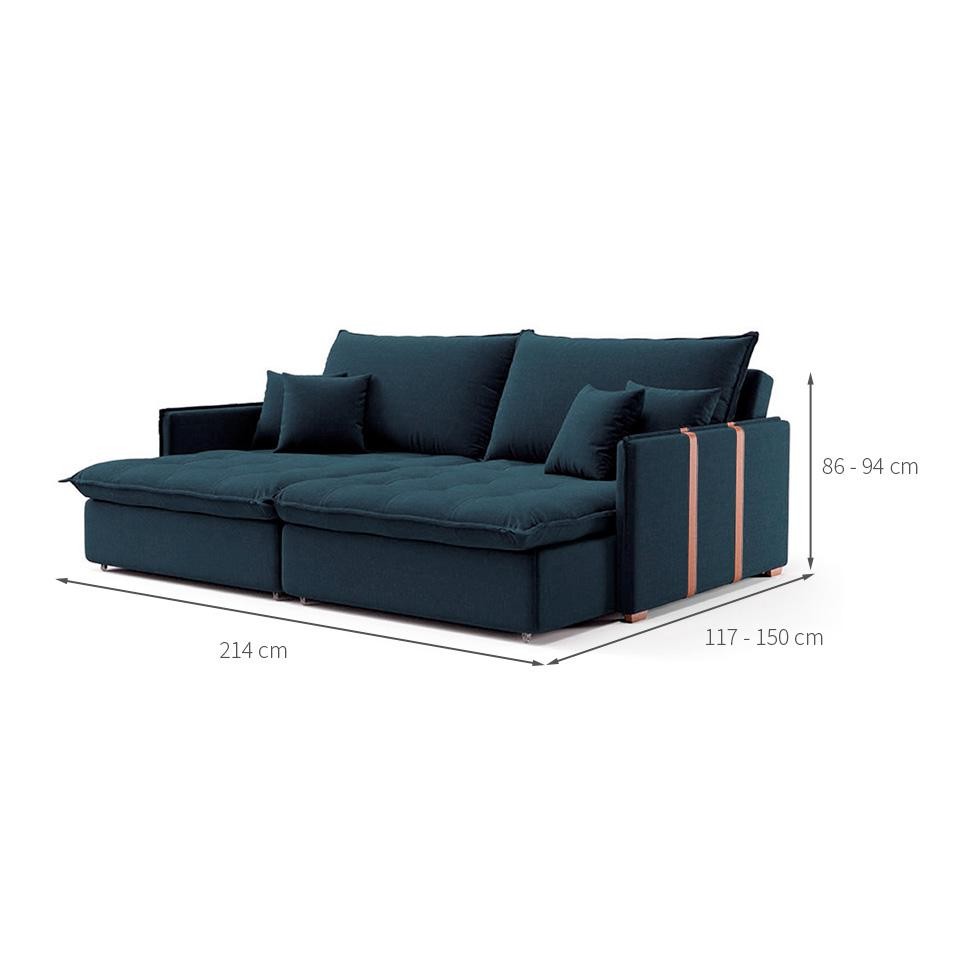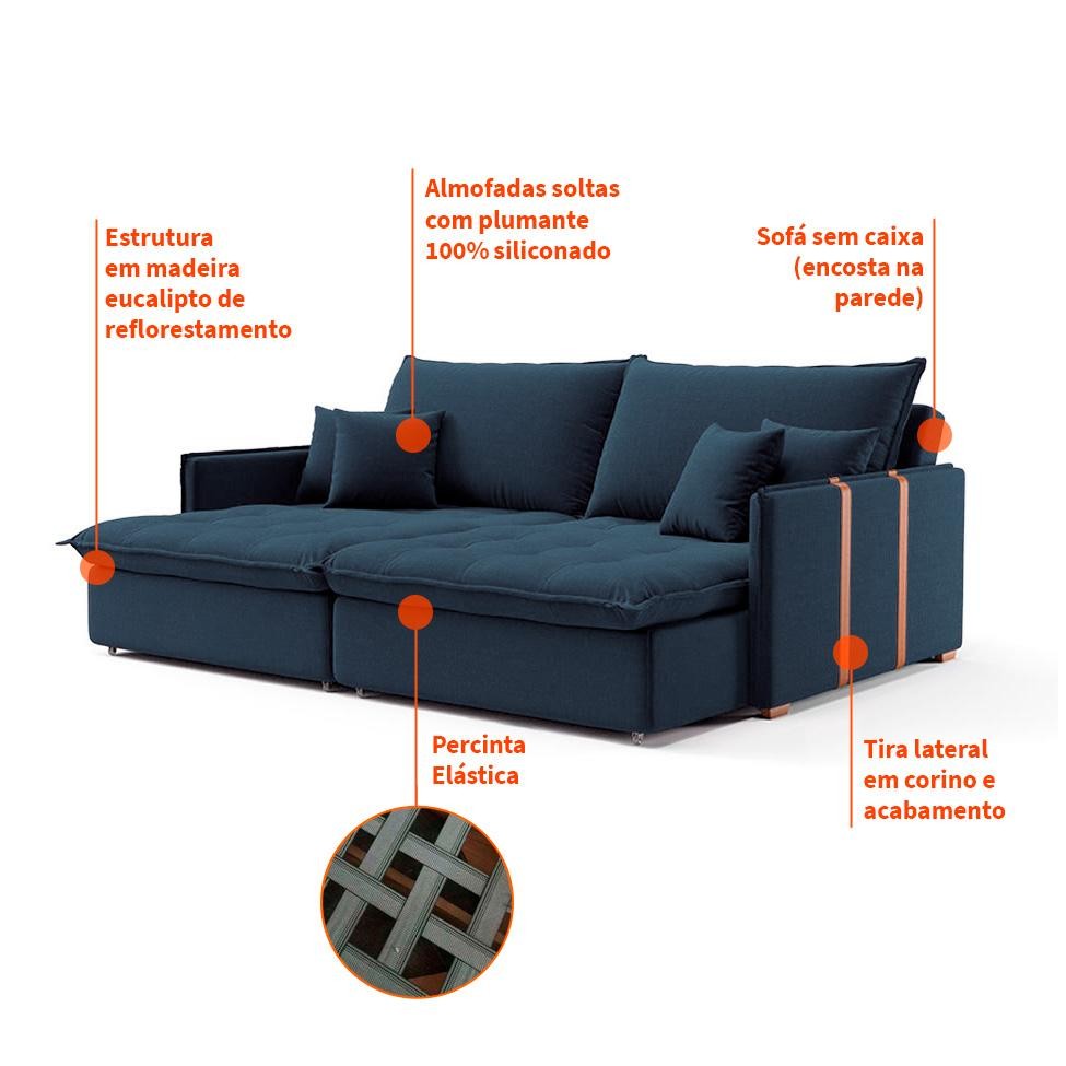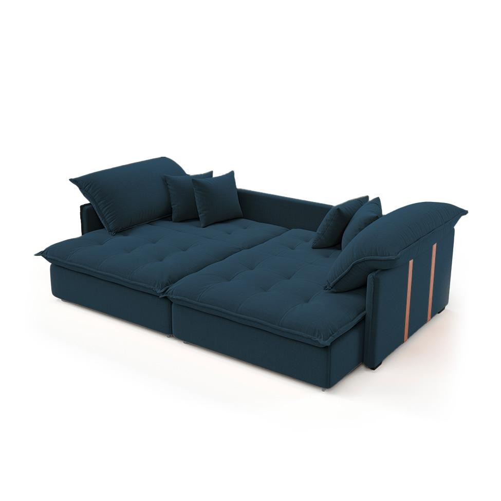 Sofá Retrátil Sem Caixa 3 lugares Solomons Linho Azul Marinho