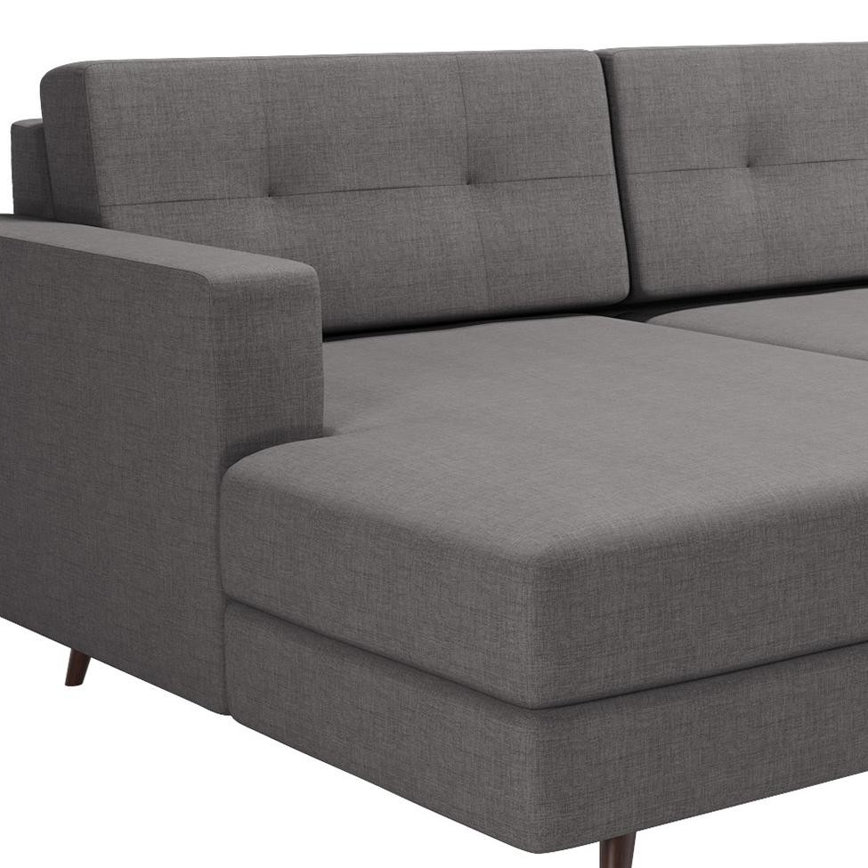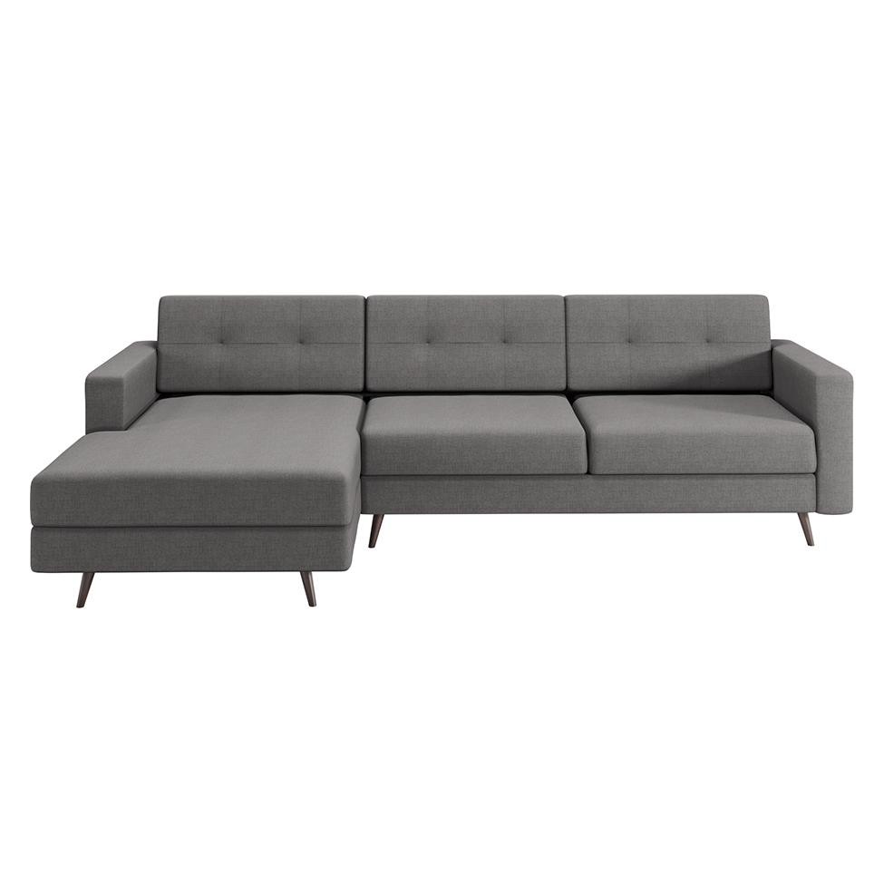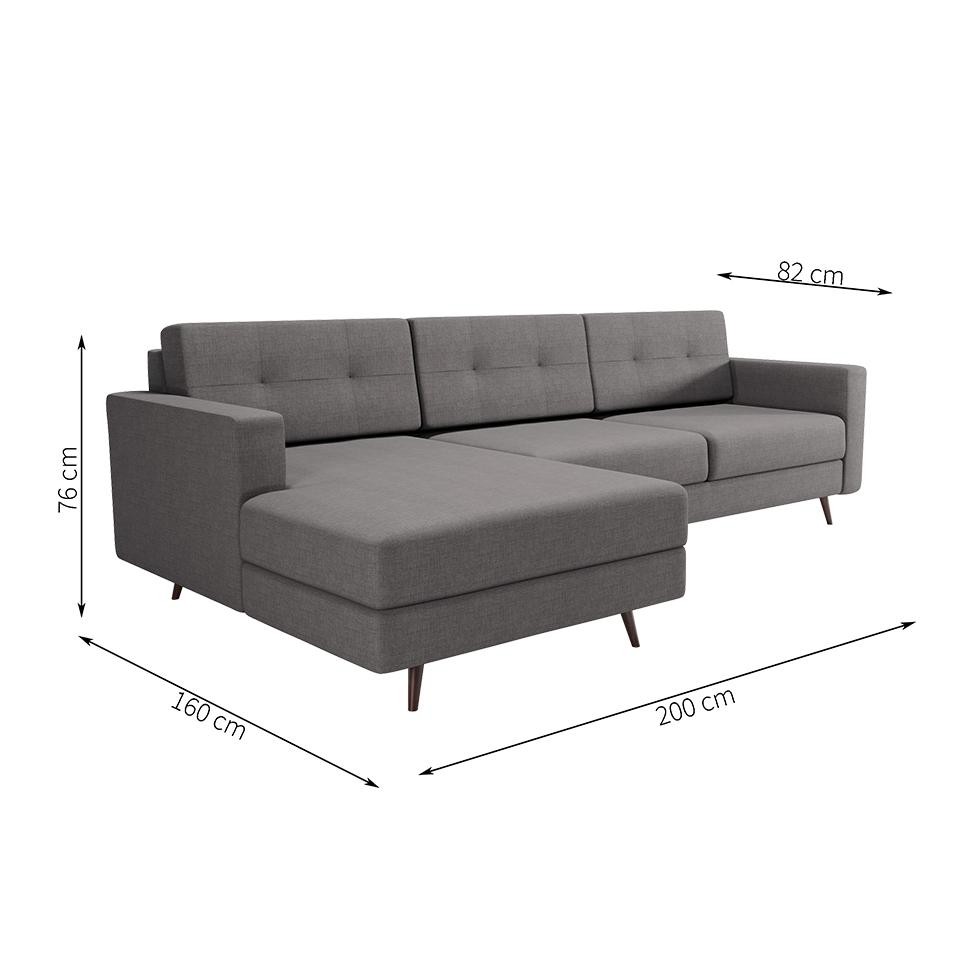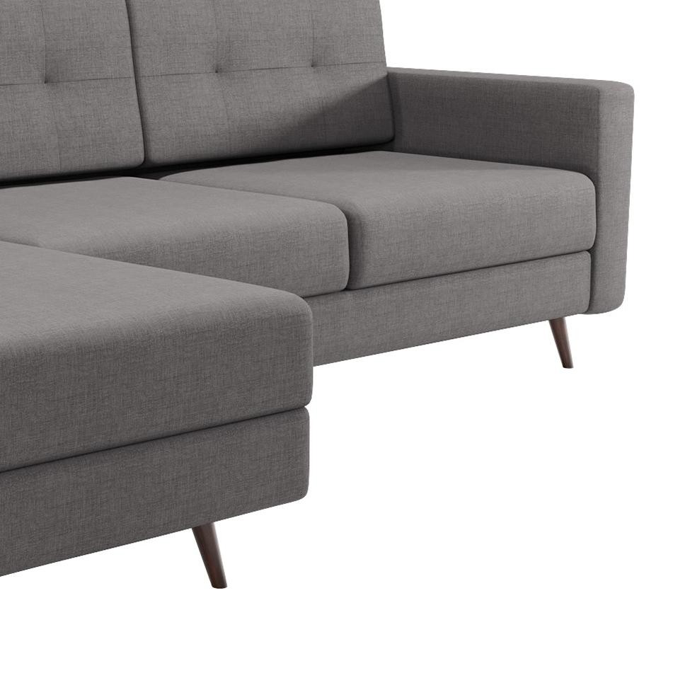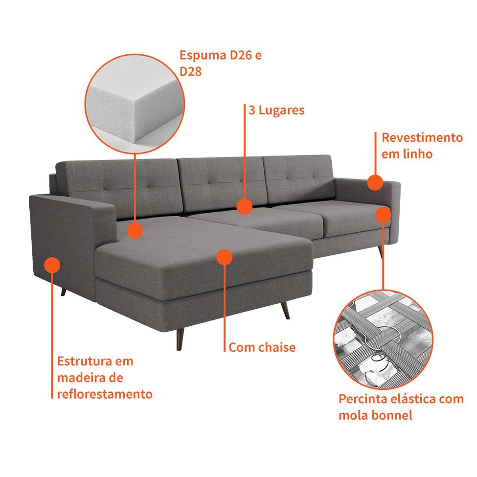 Sofá 3 Lugares Esquerdo Living com Chaise Esquerdo Pé Palito Linho Cotton Cinza