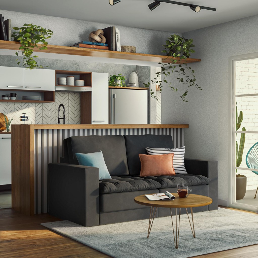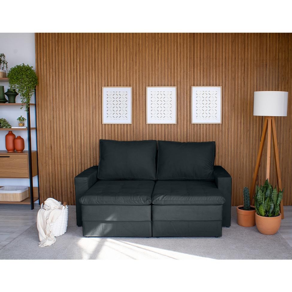 Sofá 3 Lugares Retrátil Berna Suede Grafite 180 cm