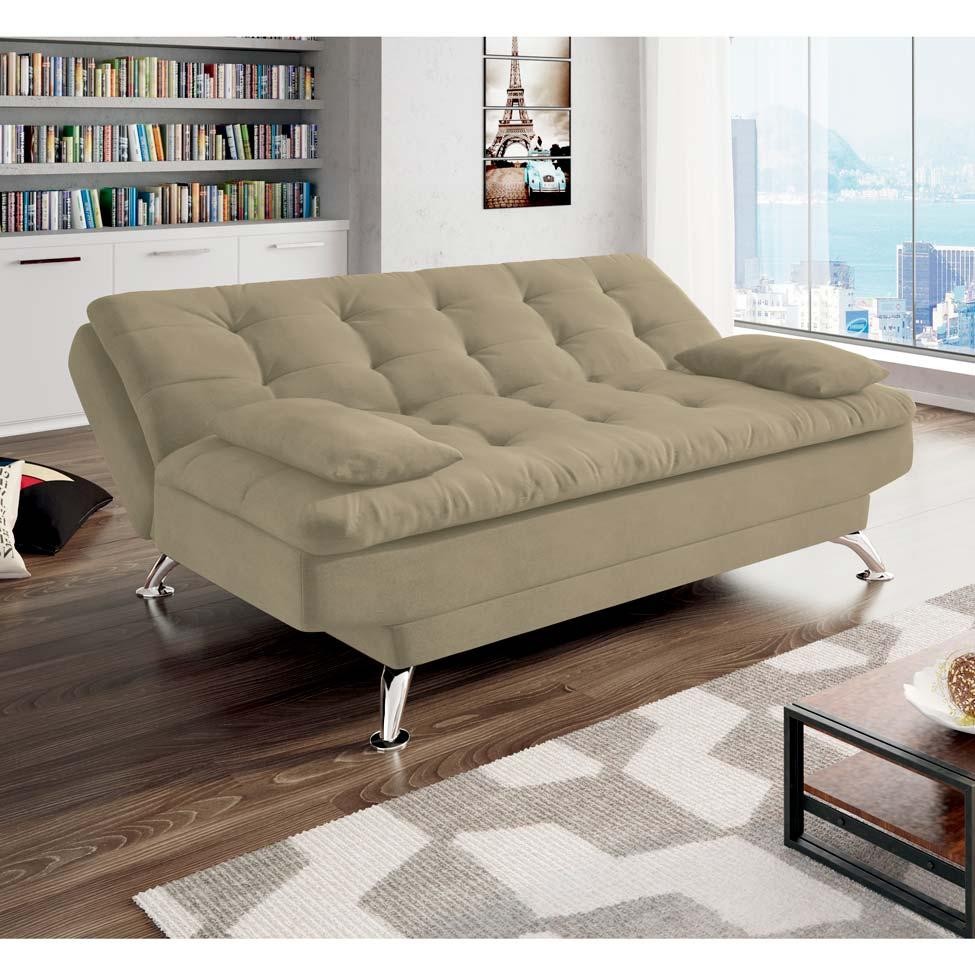 Sofá-Cama 3 Lugares Casal Premium Suede Velvet Bege