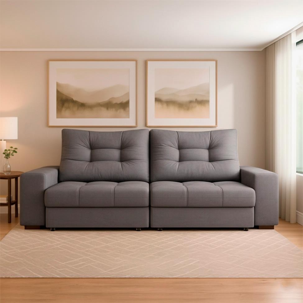 Sofá 3 Lugares Retrátil e Reclinável Biarritz Suede Castanho